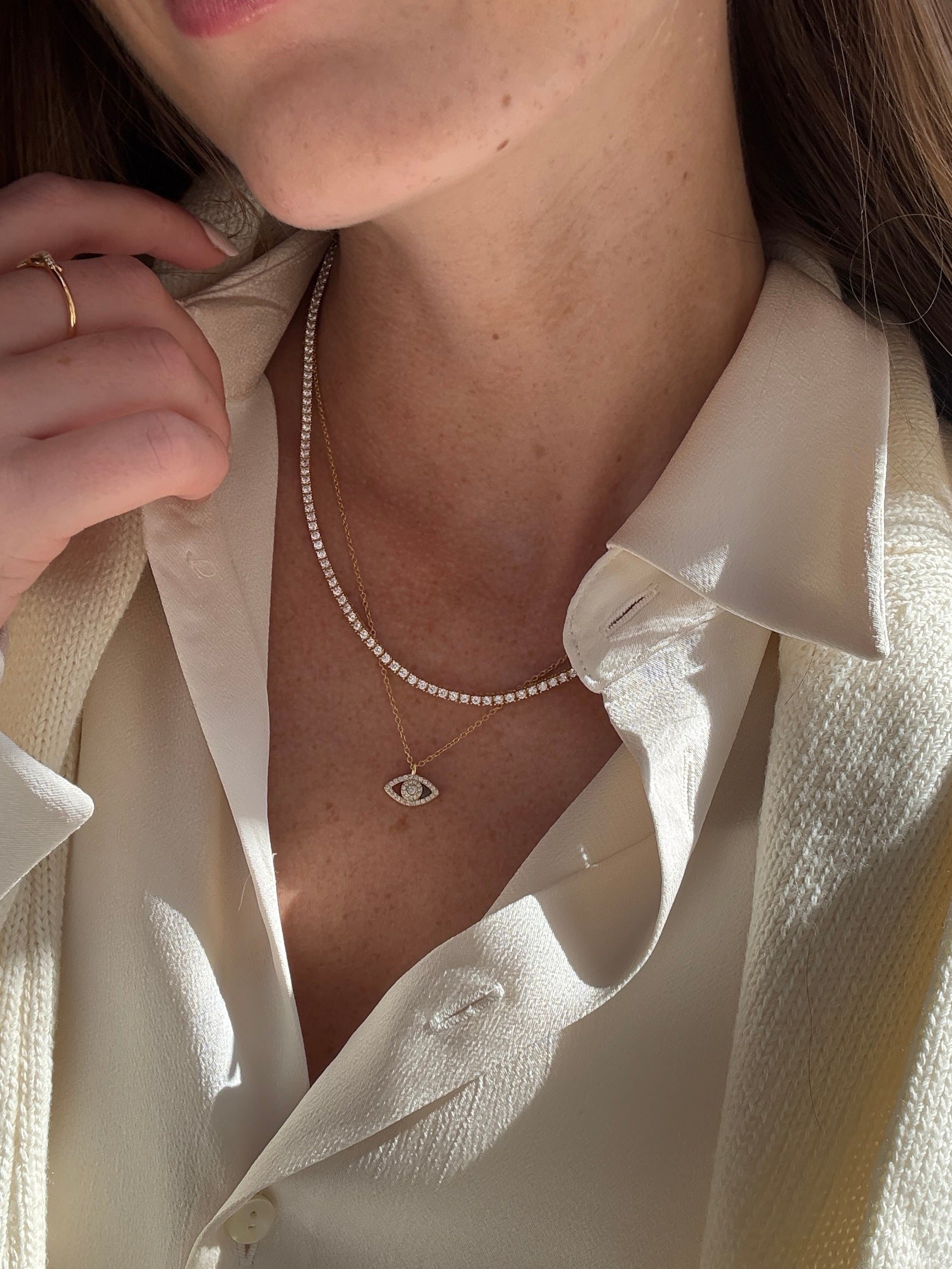 18K Gold Motif Necklace – Evil Eye