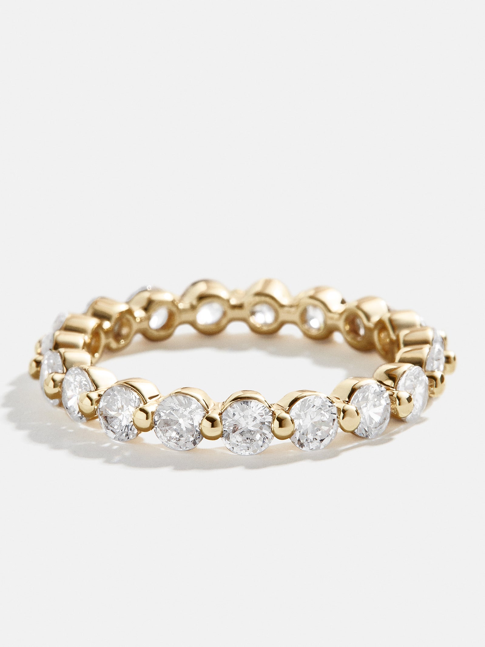 The Alice Ring is a welcome addition to our renowned Alidia Ring collection. Extra sparkly Cubic Zirconia stones allow for even more shine and are crafted in a delicate round shape. Flanked with classic gold hardware. this super stackable ring is paired well with a few other gem styles.