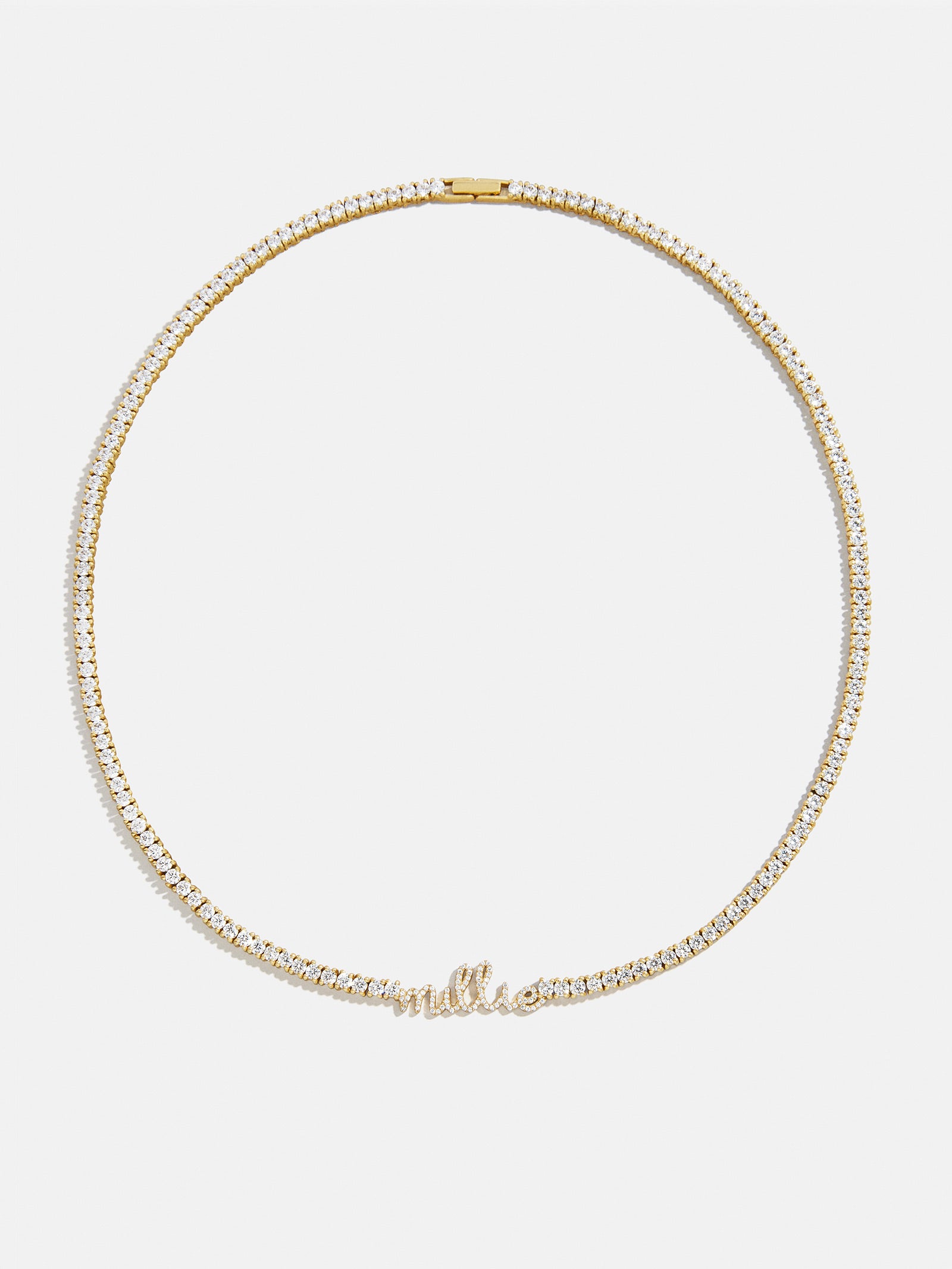 Be the first to review “Billie 18K Gold Tennis Custom Nameplate Necklace – Mini Script”