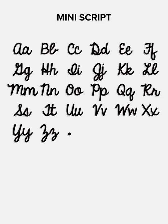 • Available in a lowercase script font or a bold uppercase block font