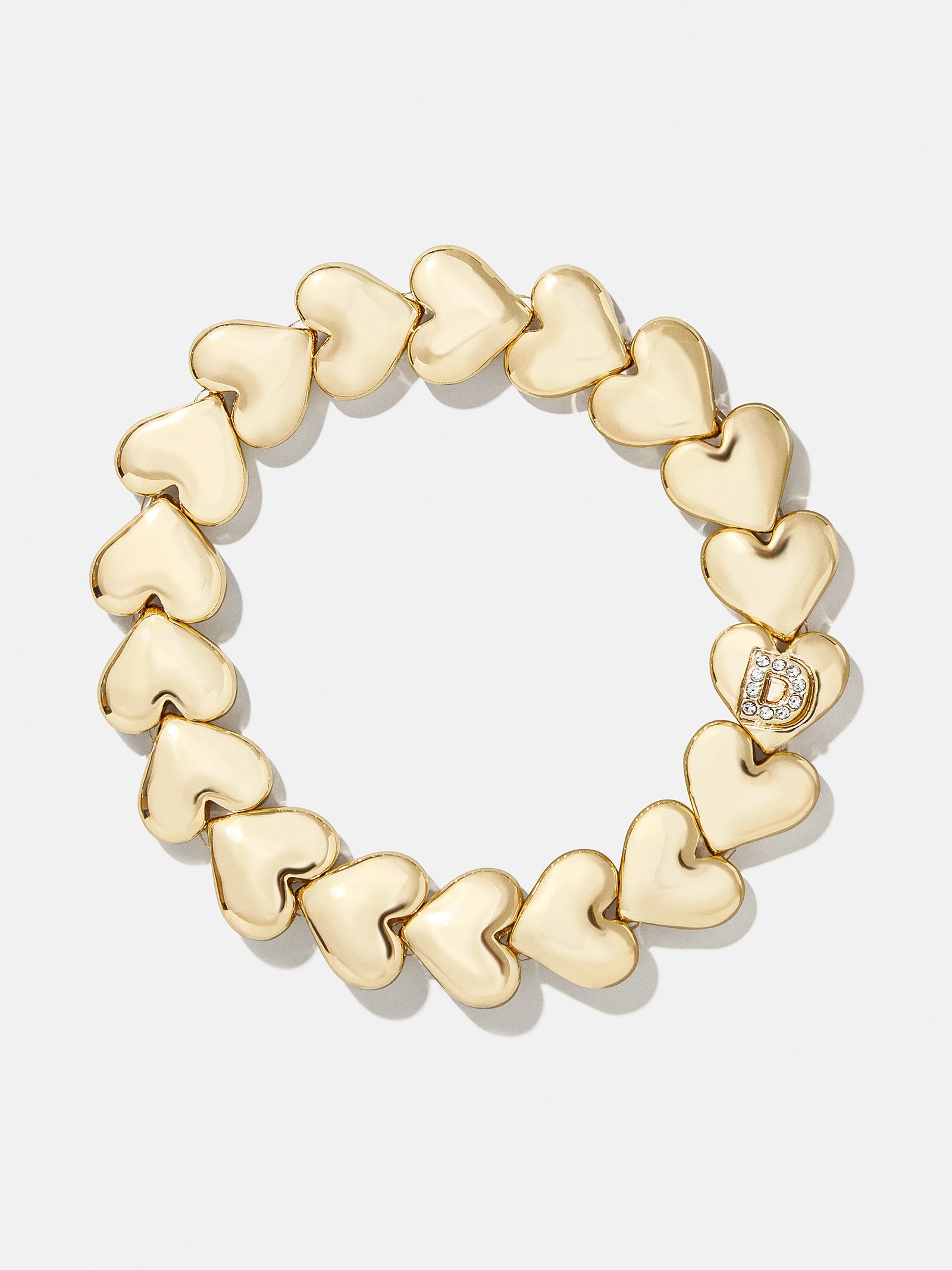 Add a little love to every wristwear look sporting the Caroline Initial Bracelet. This gold beaded stretch bracelet features repeating hearts along with a pav?? initial of your choosing. Creating an affectionate add-on for your curated bracelet stack.