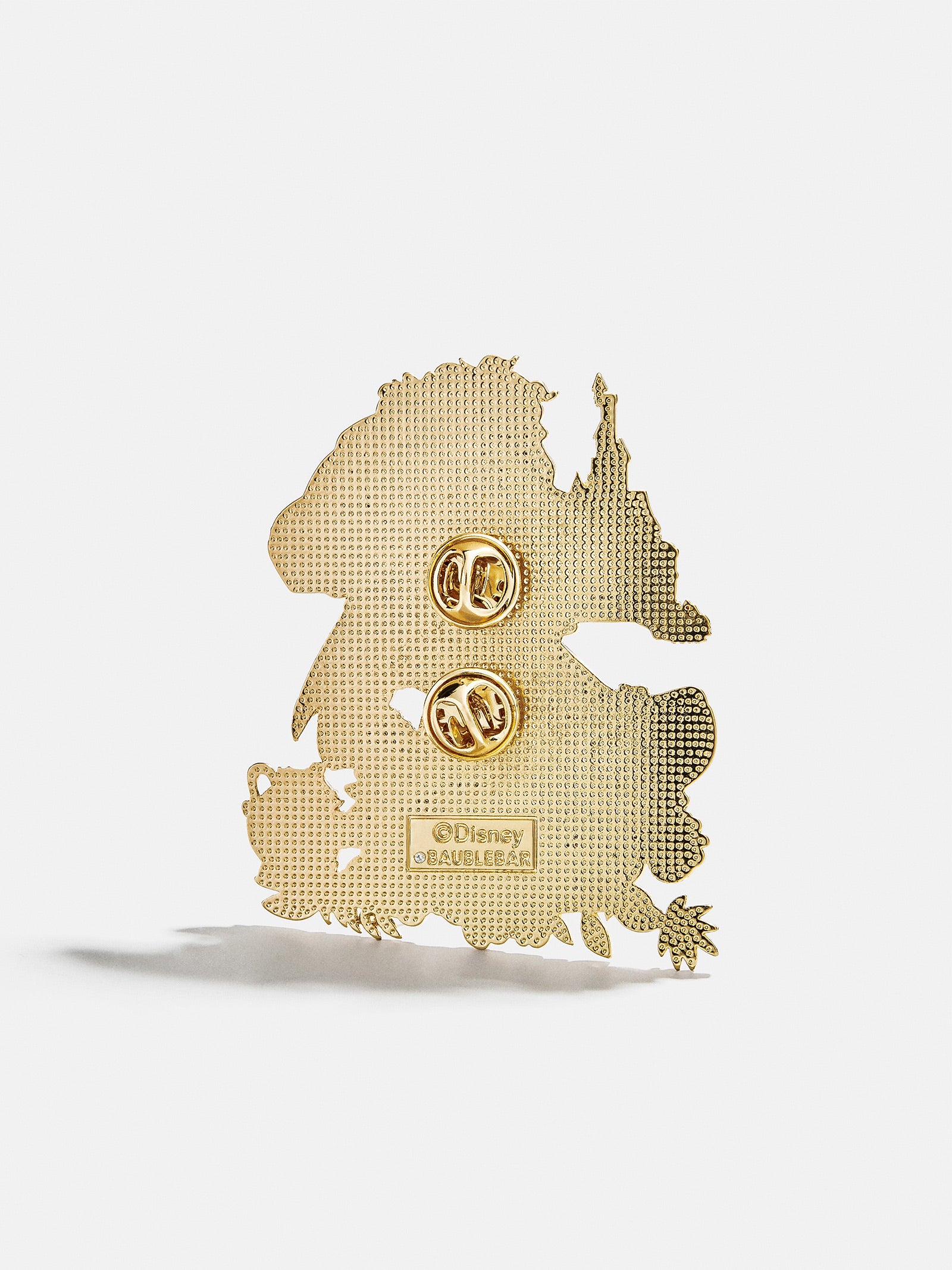Step into a tale as old as time with the enchanting Disney Beauty And The Beast Pin! Princess Belle and the Beast are shown in a dreamy ballroom dance. with Lumi??re. Mrs. Potts. Chip. and Cogsworth in the background. A true fairytale masterpiece. it’s the perfect way to bring a little happily ever after to your Disney pin collection.