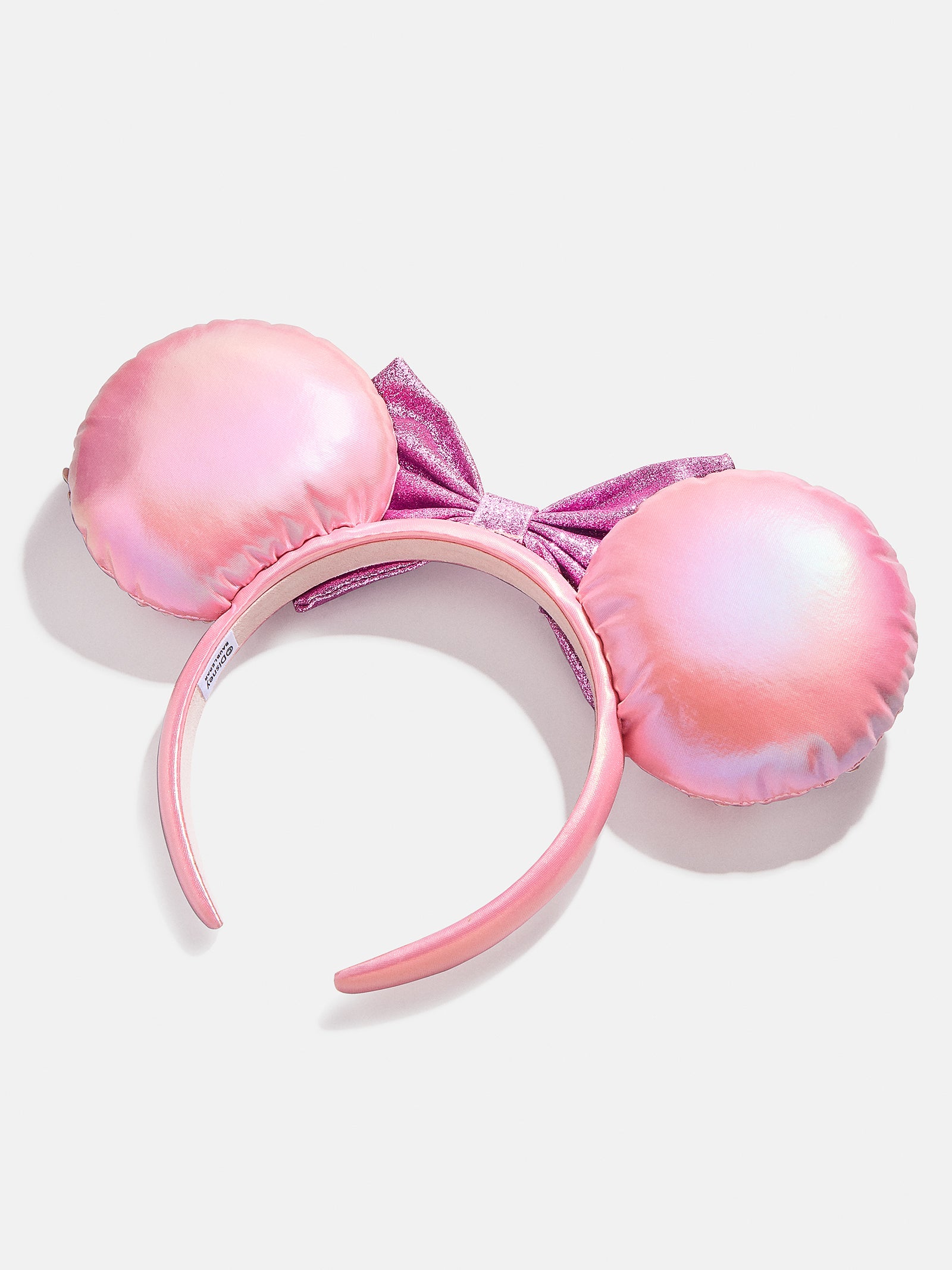 Embrace your inner Minnie Mouse with an oh-so-pretty pink look. These Disney ears are designed in a bright rose shade. and decorated with pink flowers to match. Wear it to brighten up your look and celebrate your love for the iconic mouse.