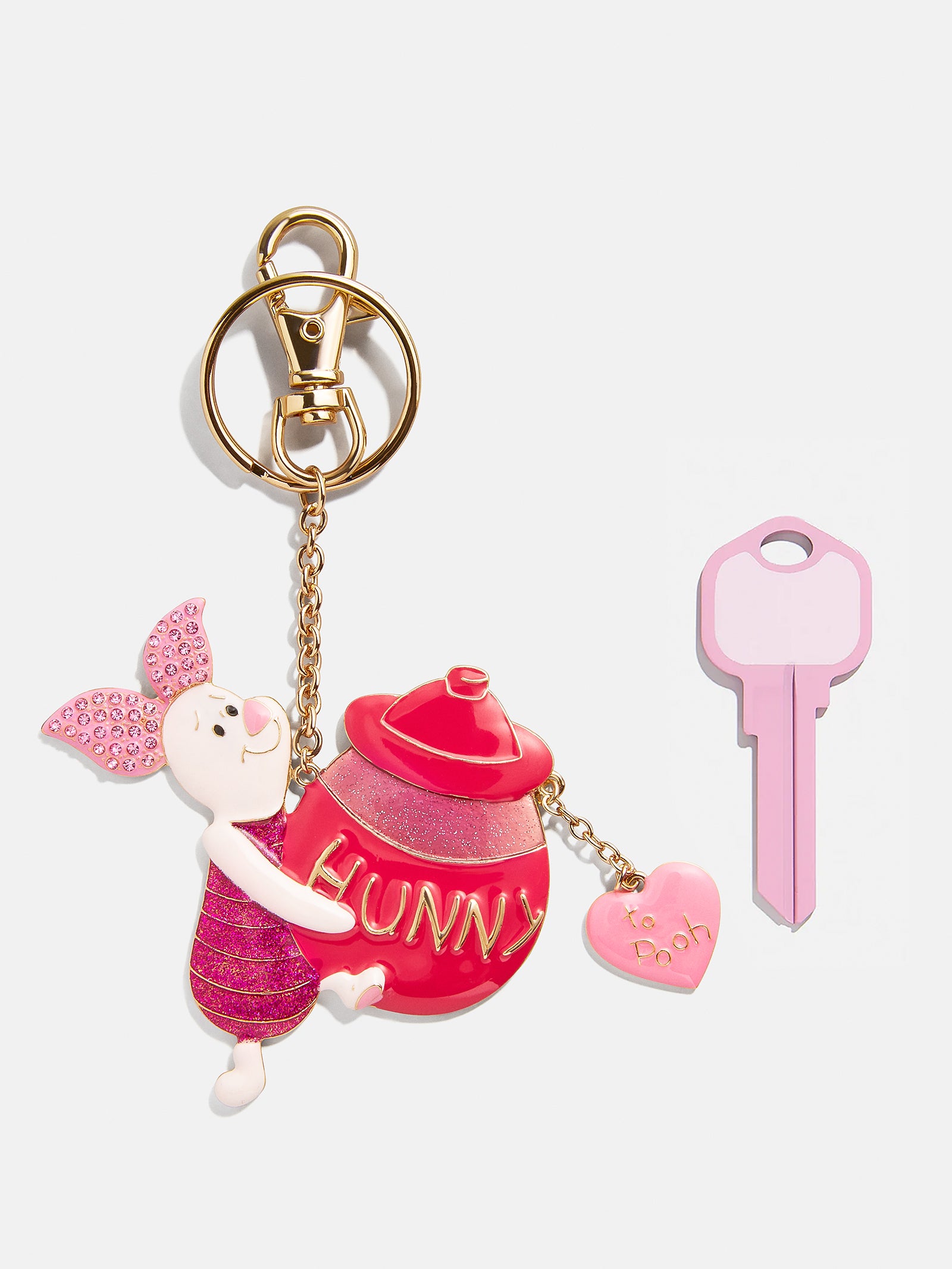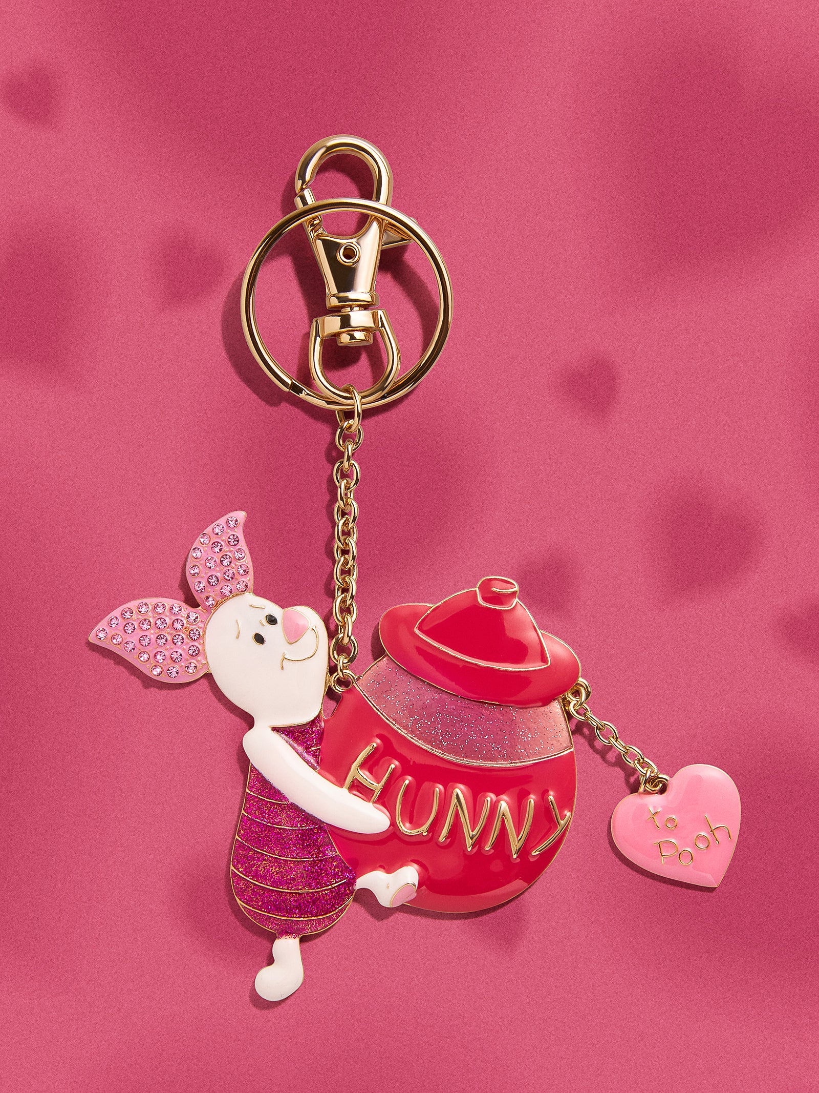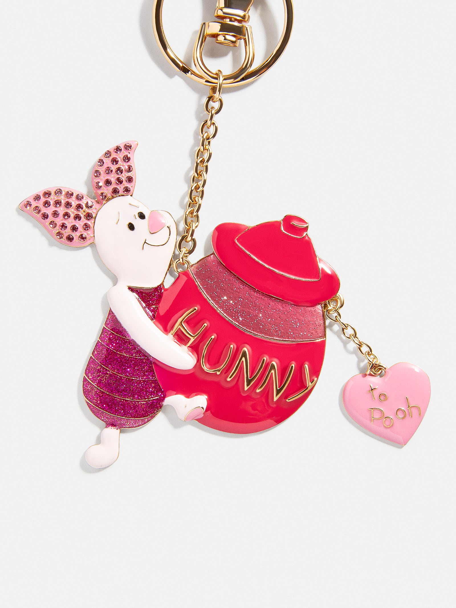 Celebrate Valentine’s Day with Piglet. This Disney bag charm features the adorable character holding a red pot of hunny for Winnie The Pooh. So sweet. easily clip on this bag charm to add lovely personality to any accessory.