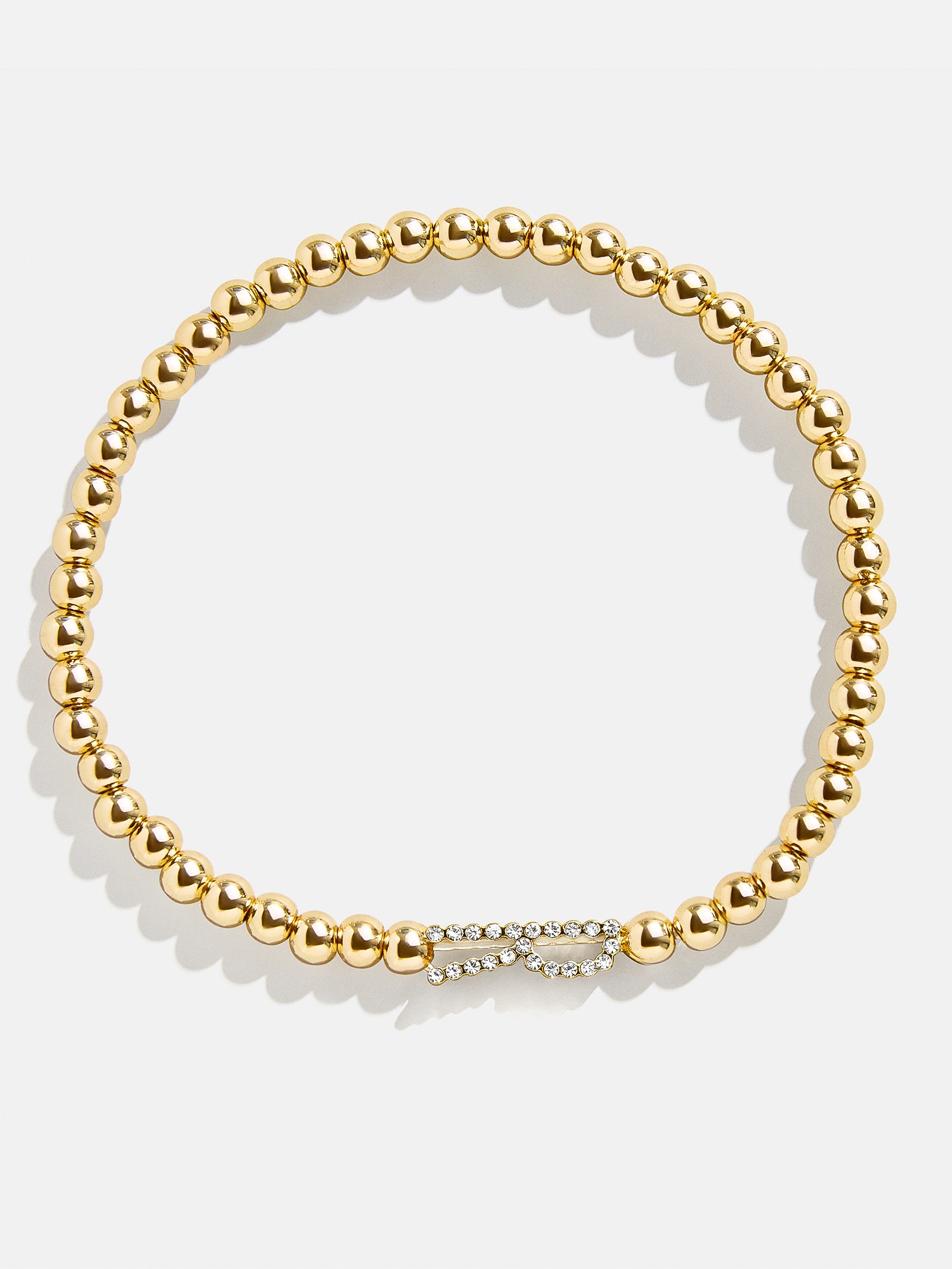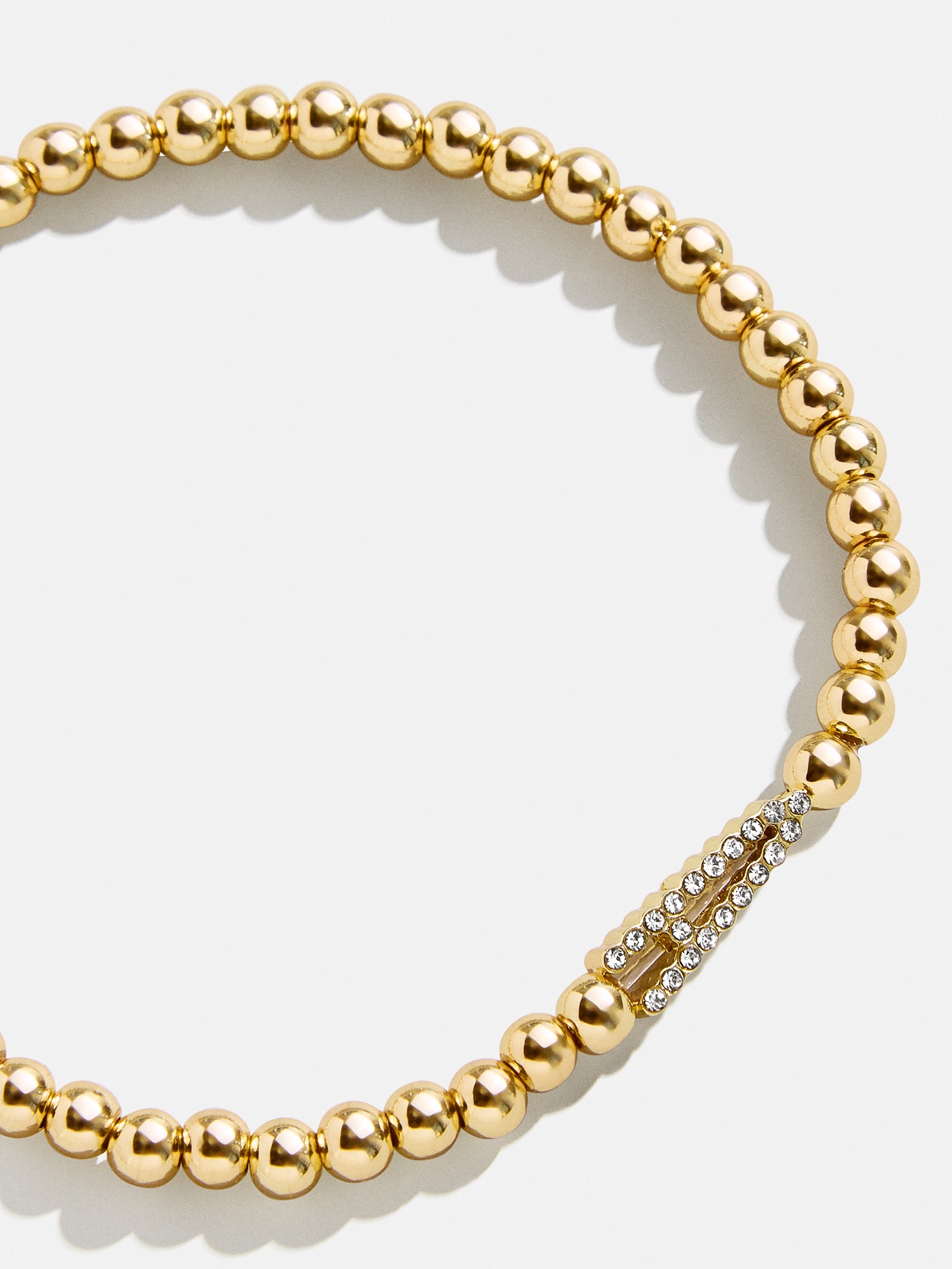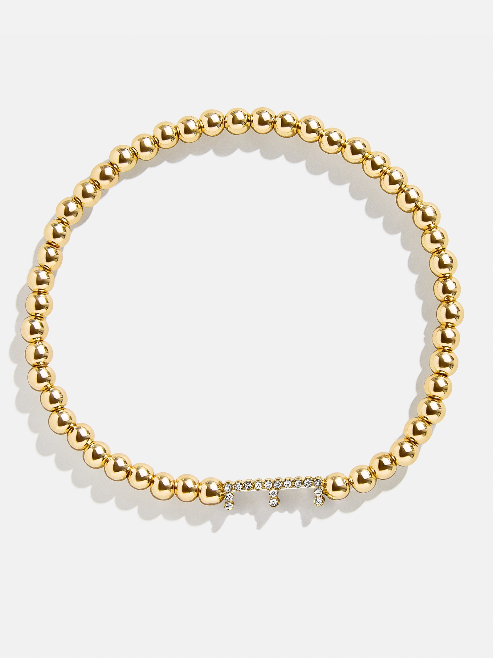Twist up your wrist stack with a personal touch. The East West Initial Pisa Bracelet is a stretch bracelet crafted with classic pisa beads. and the sideways initial of your choice. Customize it with your initial or the initial of someone special. Either way. you’ll create a signature bracelet that makes for chic everyday wearing. This bracelet features 4mm gold beads.