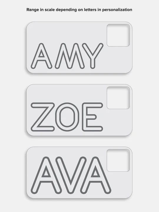 • Fits up to 12 characters – choose meaningful initials. a name or add numbers and symbols.