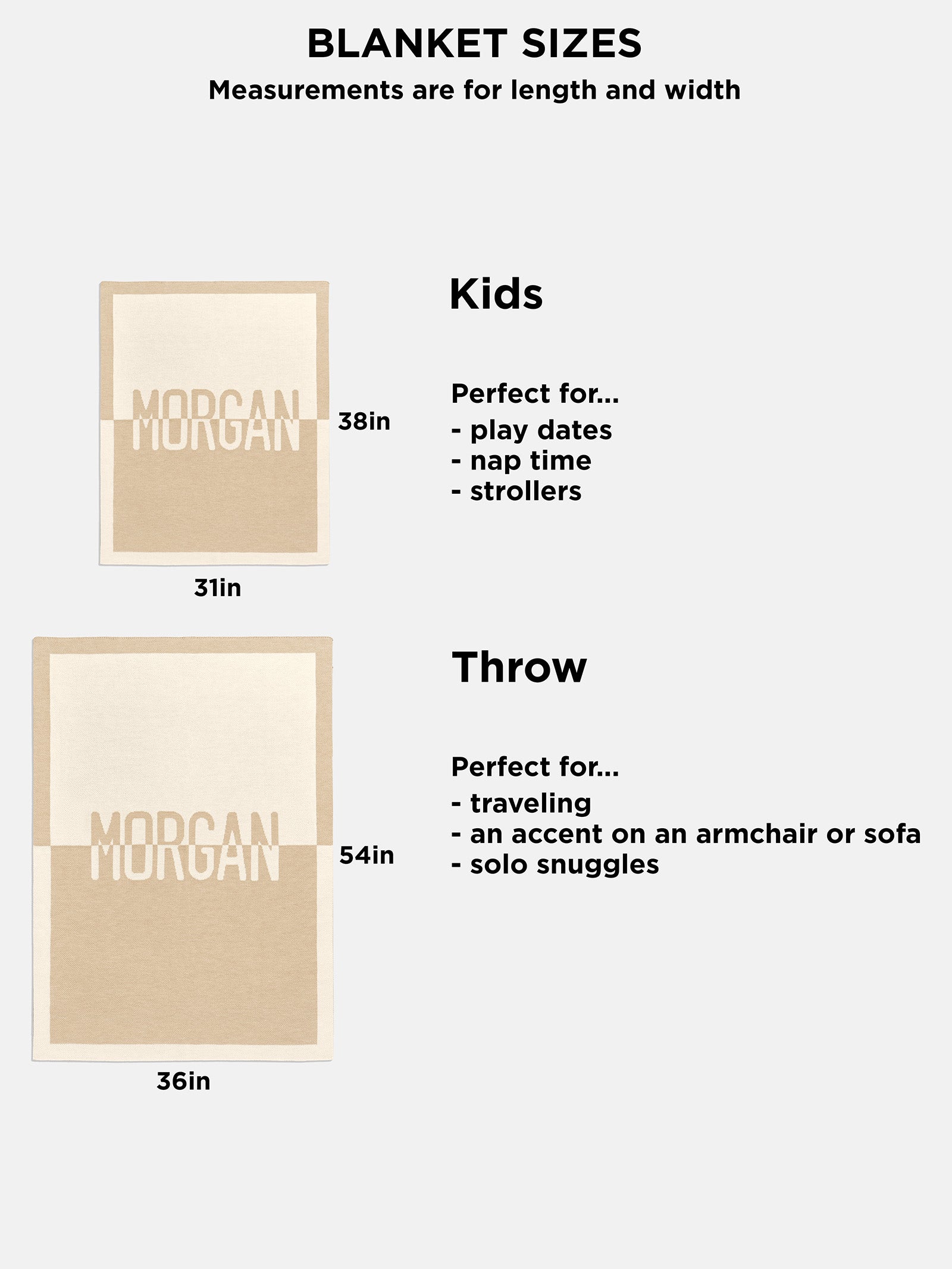 - Three sizes available. in order from smallest to largest: kids. throw. and blanket
