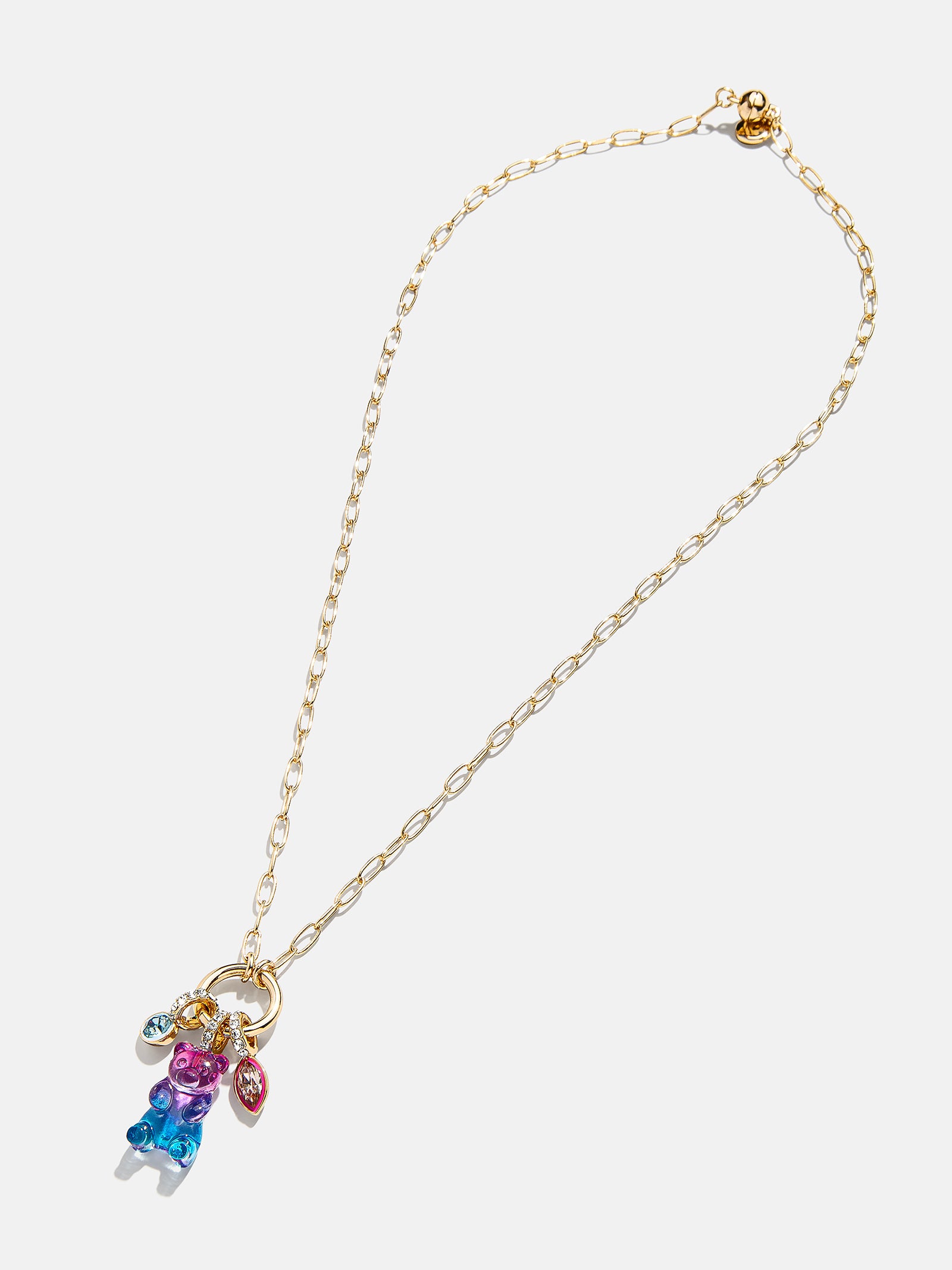 Give your little one star-studded style with our Kids’ Sugar Rush Charm Necklace! Featuring 3 charms including a gummy bear surrounded on either side by two colorful gems. this necklace will add a touch of fun to any outfit. Perfect for your little trendsetter!
