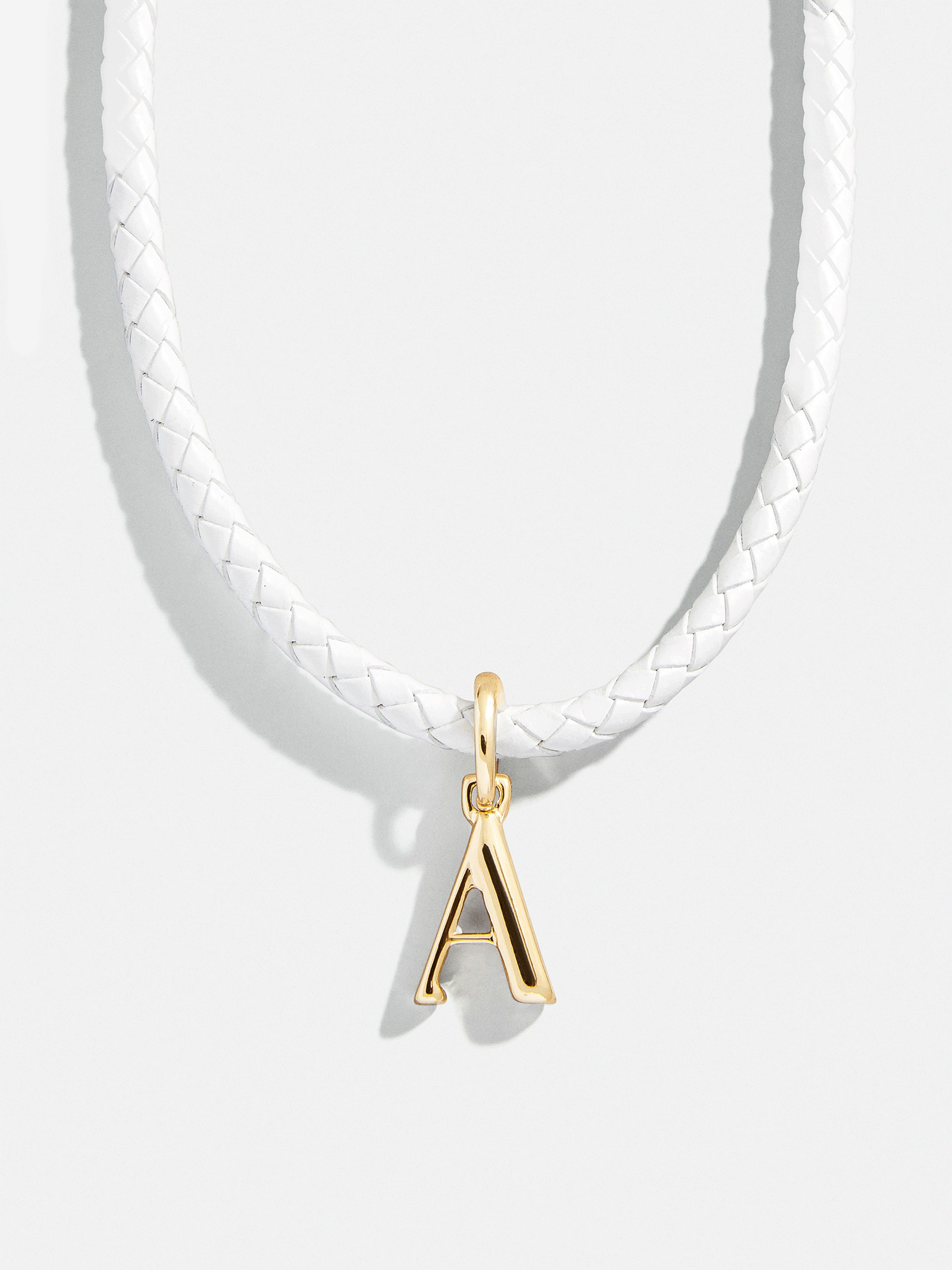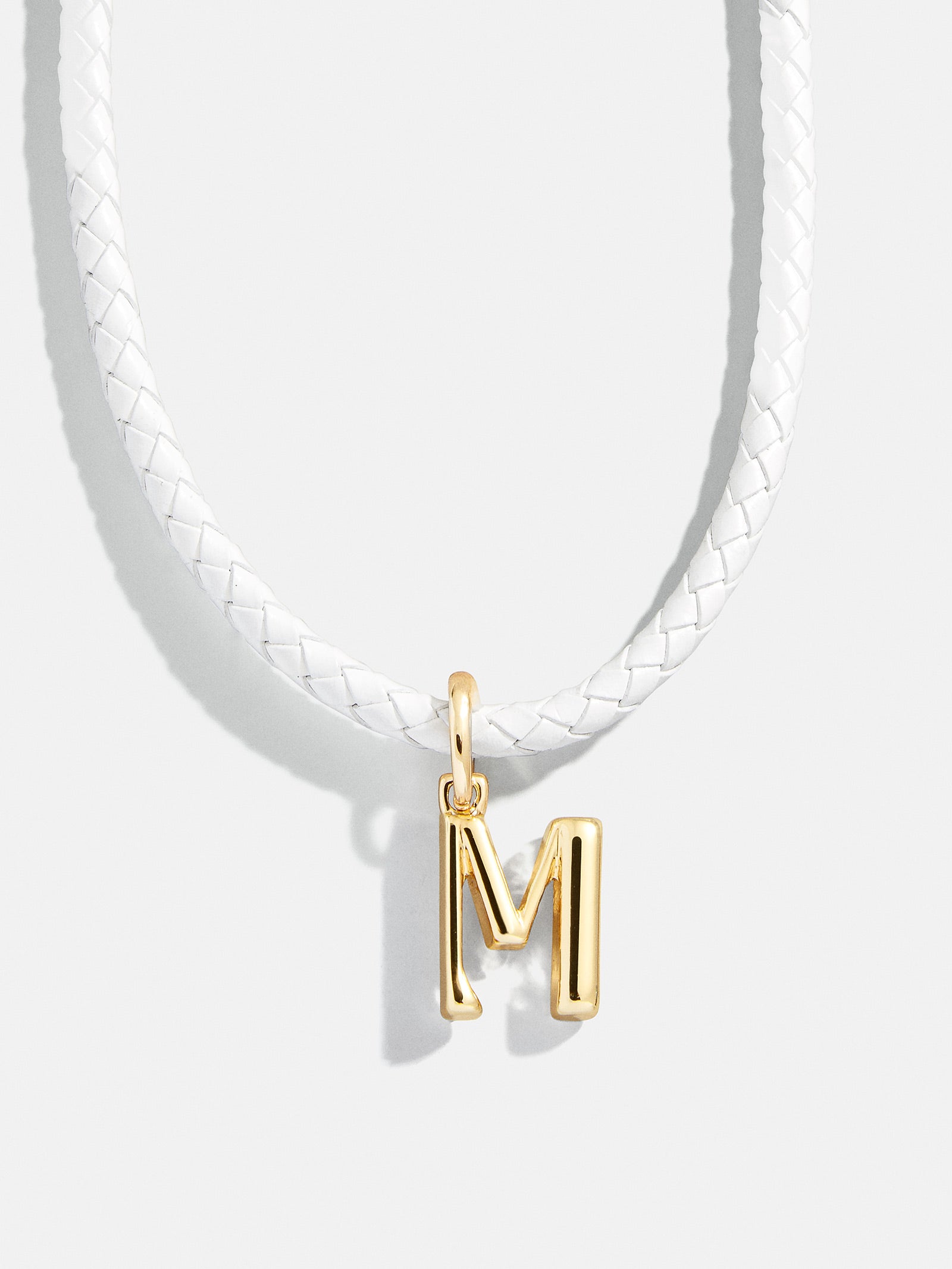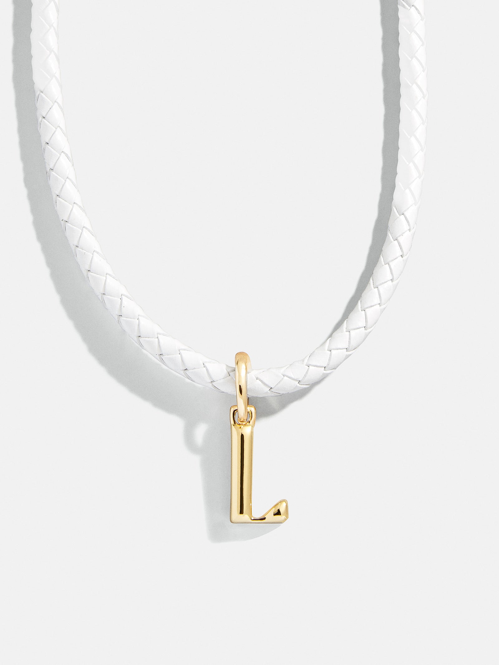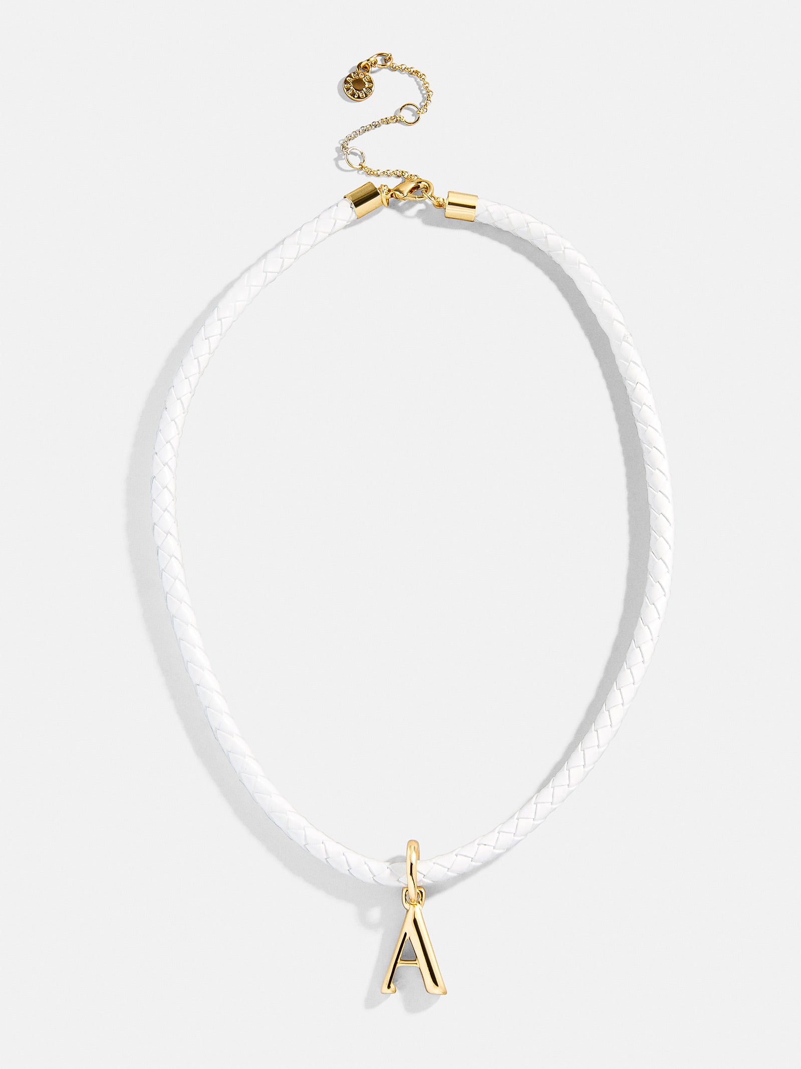 Minimalist. modern. and made just for you ?? the Leather Custom Initial Necklace adds a personal touch to your everyday look. Designed with the gold initial of your choice on a white leather cord. it’s effortlessly cool no matter how you style it.