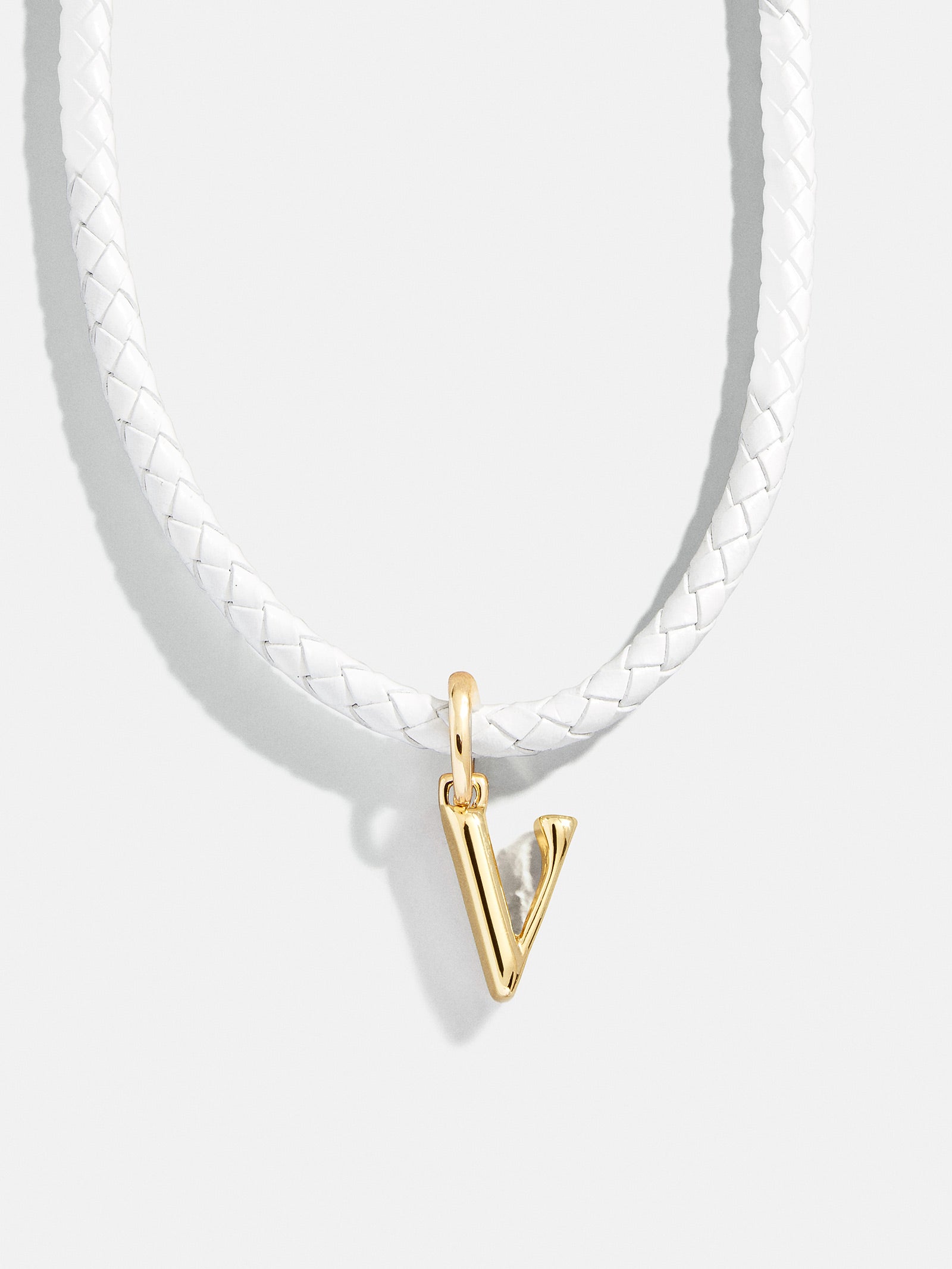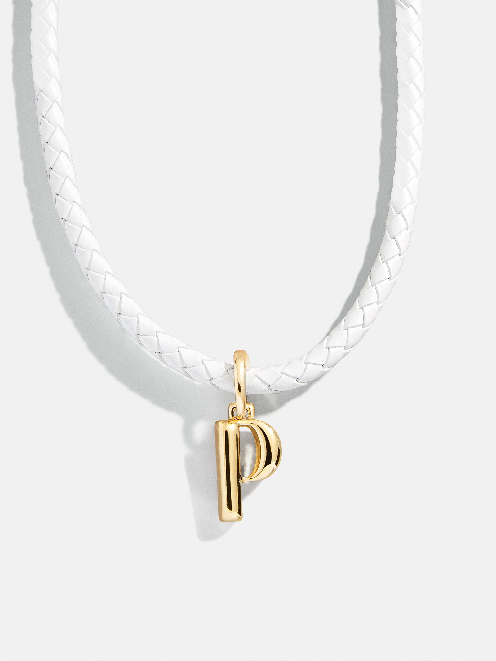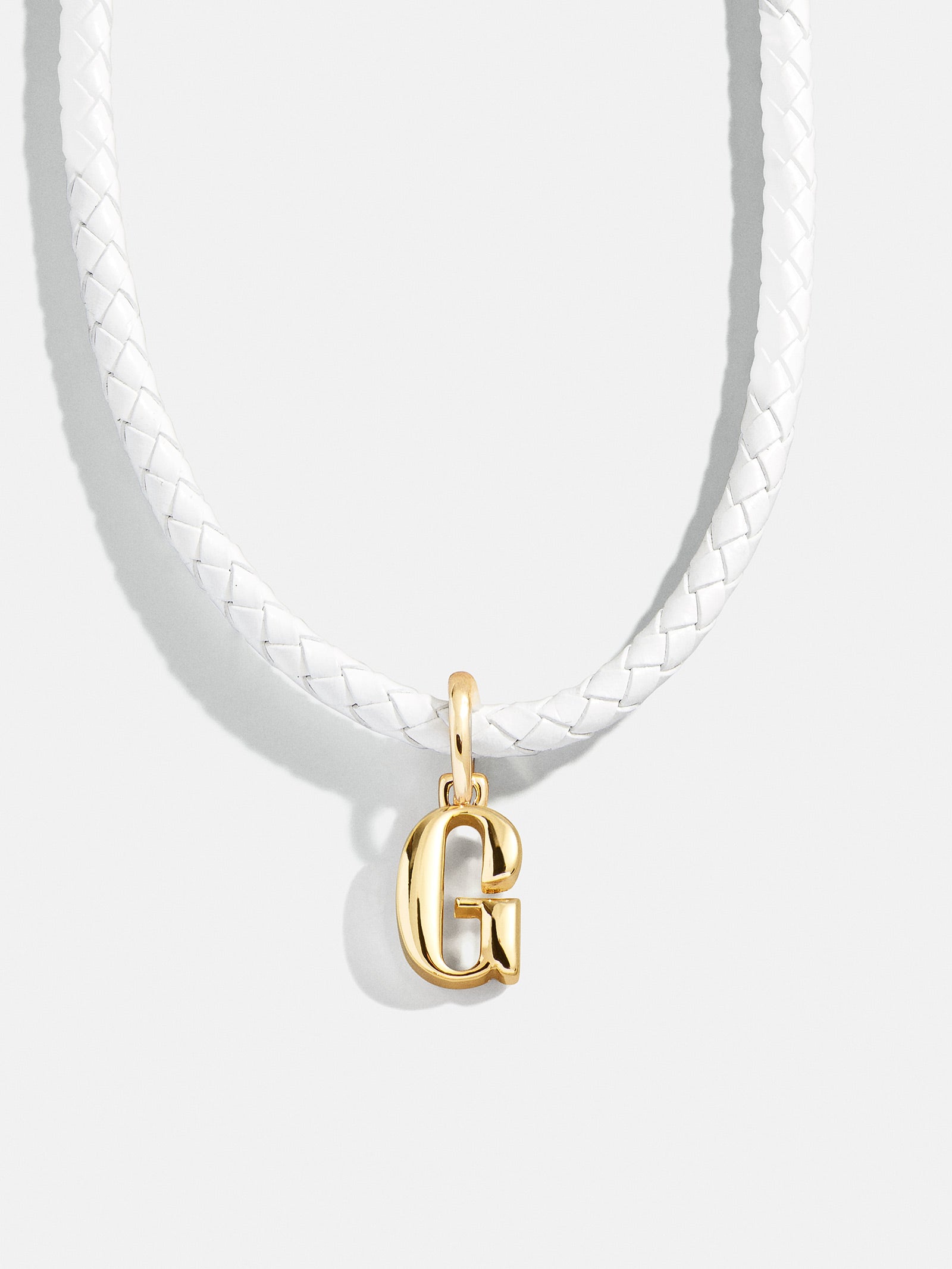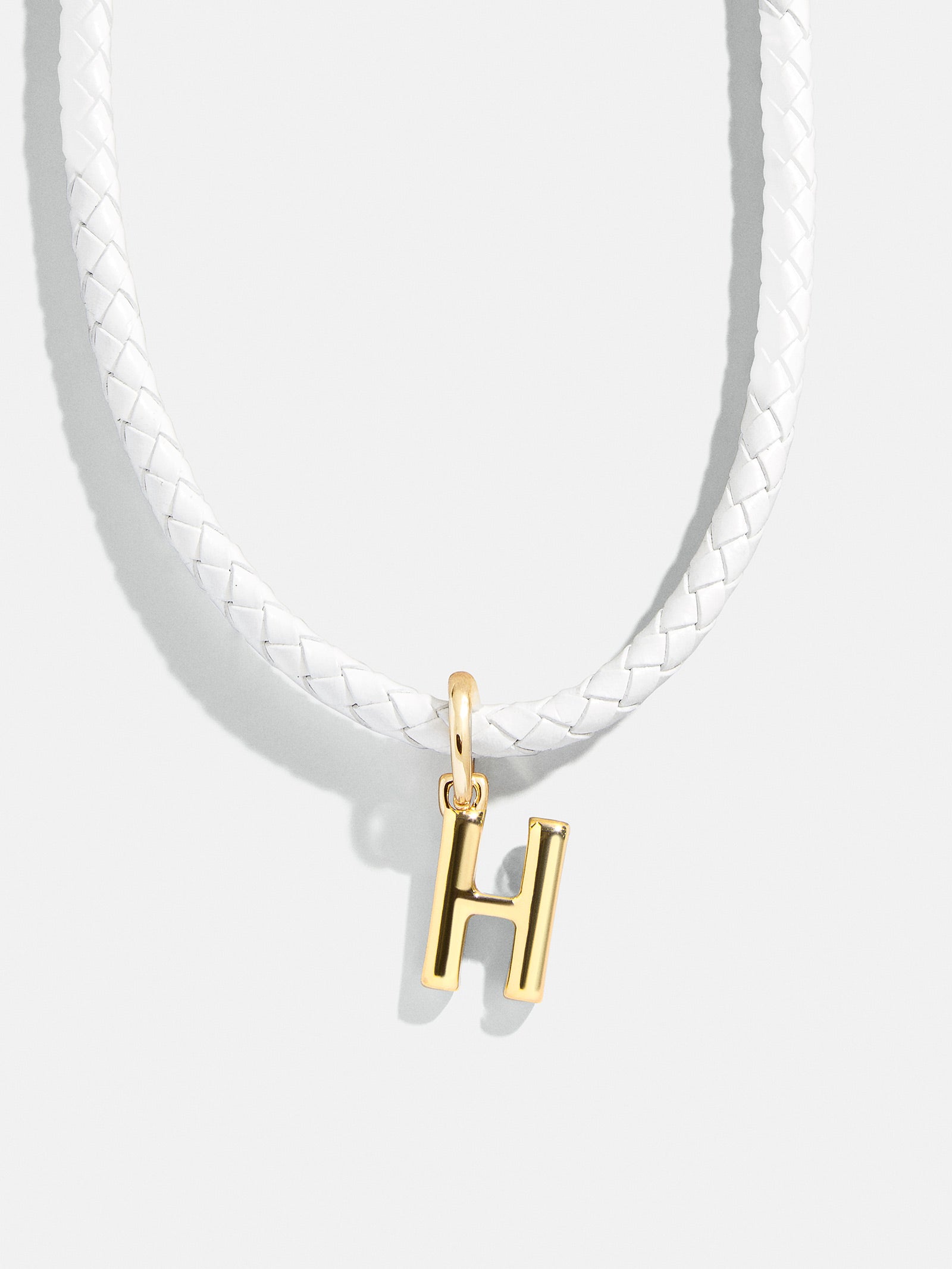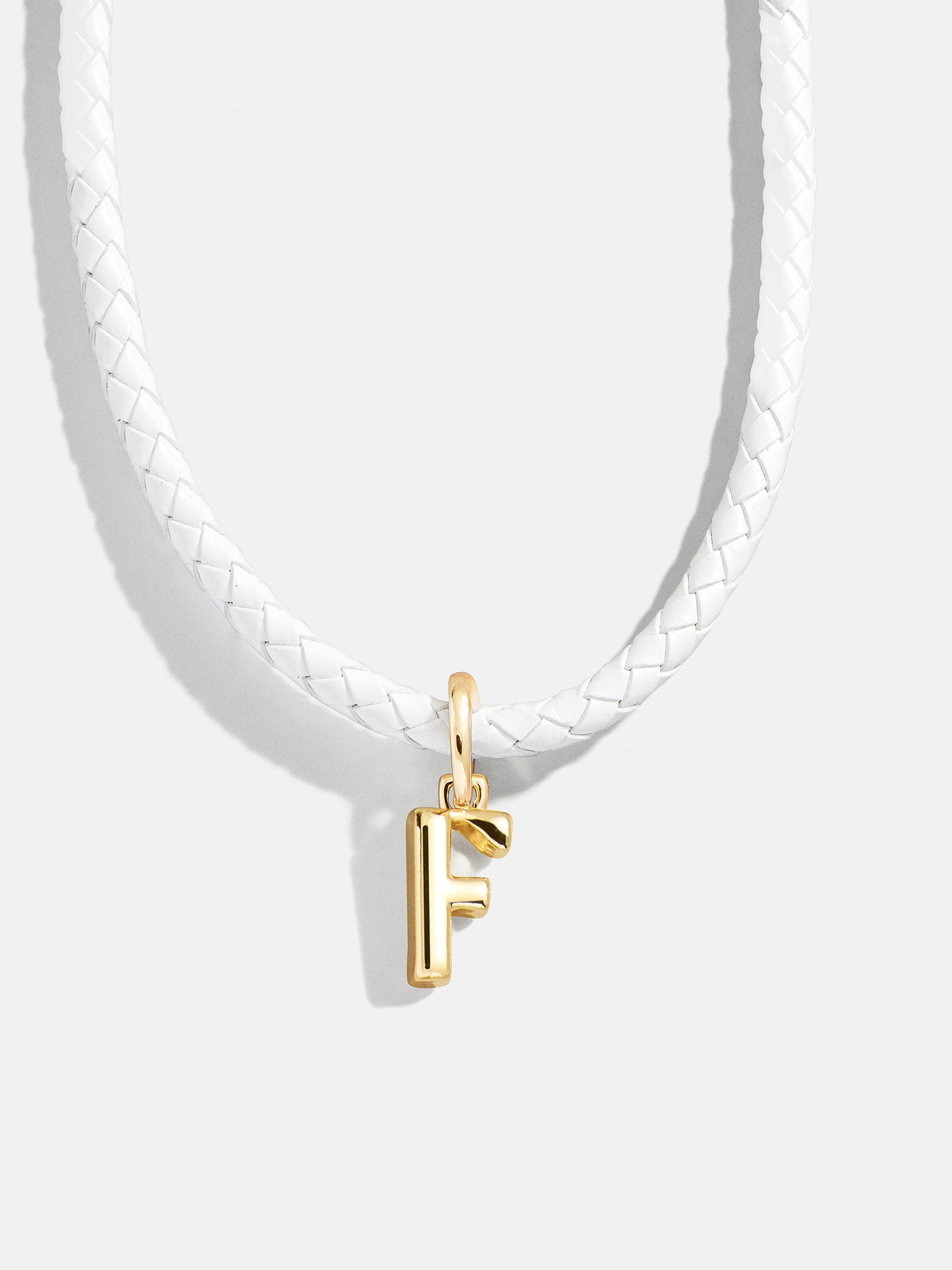 Minimalist. modern. and made just for you ?? the Leather Custom Initial Necklace adds a personal touch to your everyday look. Designed with the gold initial of your choice on a white leather cord. it’s effortlessly cool no matter how you style it.
