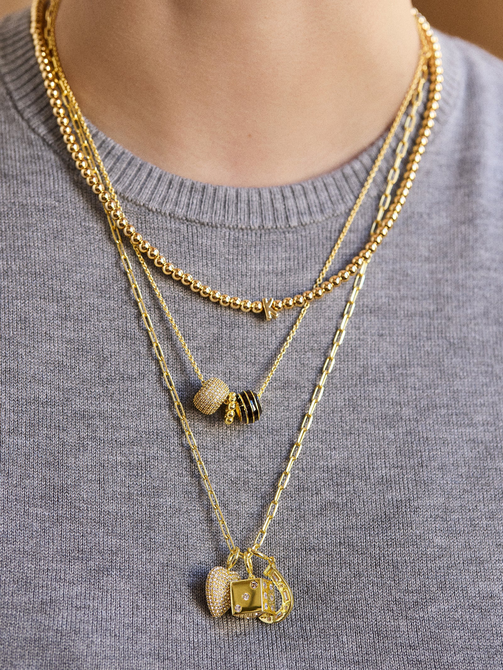 Add something modern and meaningful to necklace layers with a charm necklace. Our cluster charms and bead charms easily slide on and off their chains so you can mix and match a wide mix of intentional add-ons.