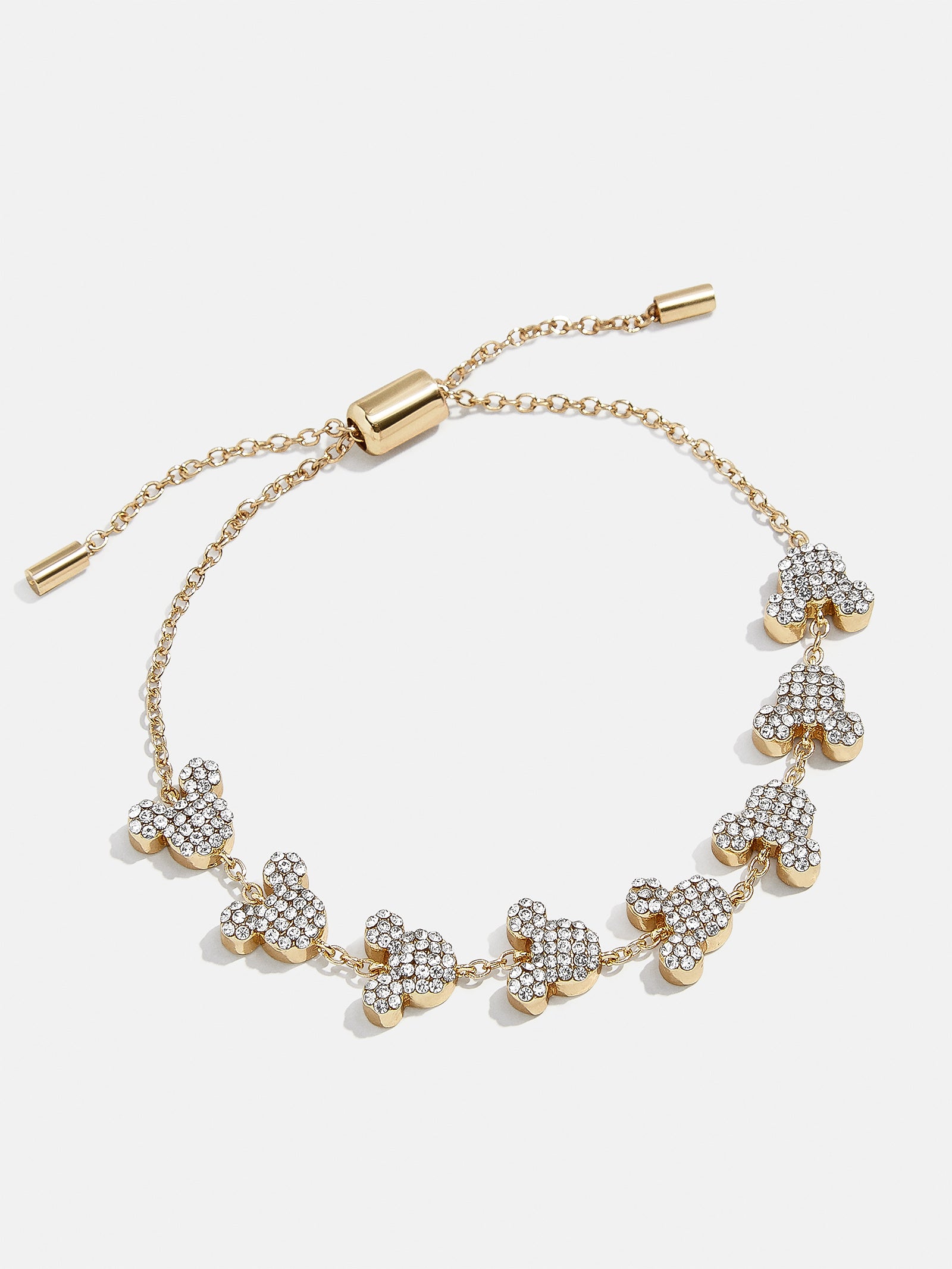The Mickey Mouse Disney Pavé Pull-Tie Bracelet is the perfect way to add a subtle dose of Disney to your curated wrist stack. This bracelet features petite Mickey Mouse adornments with chic negative space in between. Better yet. it’s finished off with a pull-tie closure. meaning you’ll always get the perfect fit.