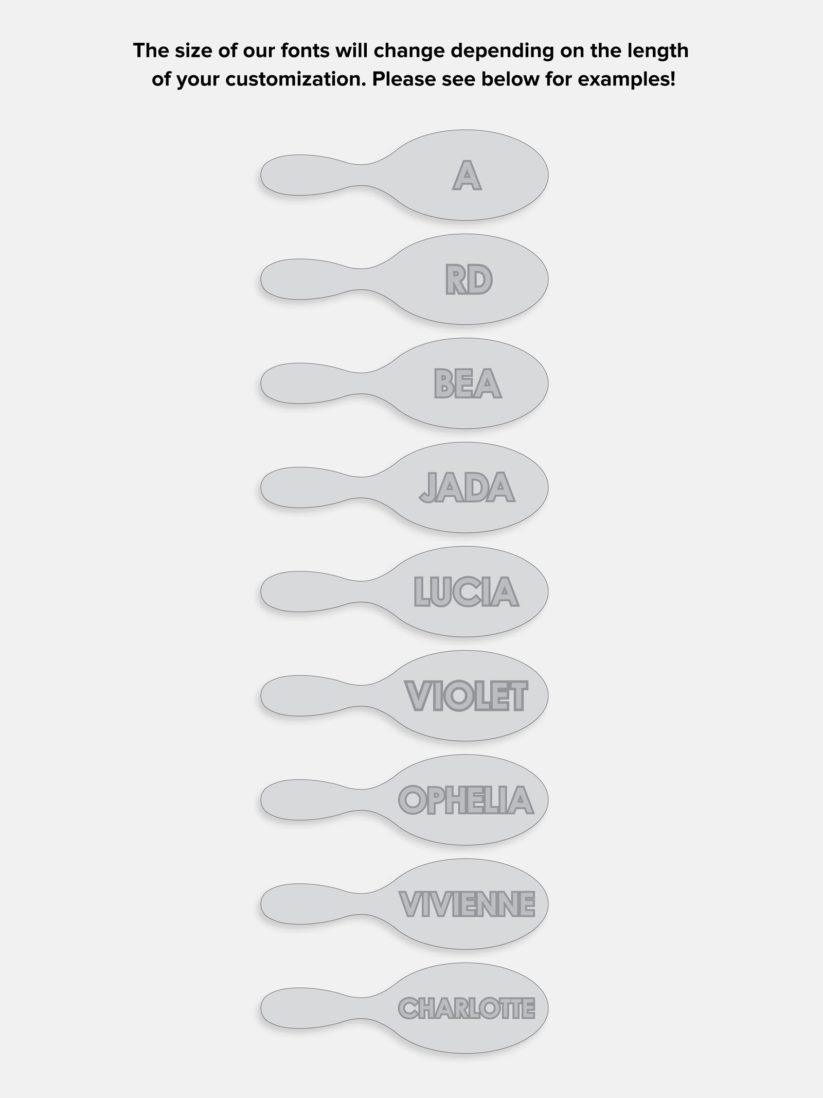 ABOUT OUR CUSTOM HAIR BRUSHES: Our collection of custom hair brushes make your everyday routine just a little more extra – because why not? Inspired by our best-selling custom phone cases. each is crafted with a sturdy. substantial. and water resistant acetate base. Every letter is also made with durable acetate and hand-cut to your specifications. The raised nature of the letters creates a fun. 3D effect. Finally. each of the bristles is made from nylon and silicone. reducing static and/or tangles. Fun fact: each brush is crafted in a dust-free room. ensuring that your piece will be absolutely perfect and free of any flaws.