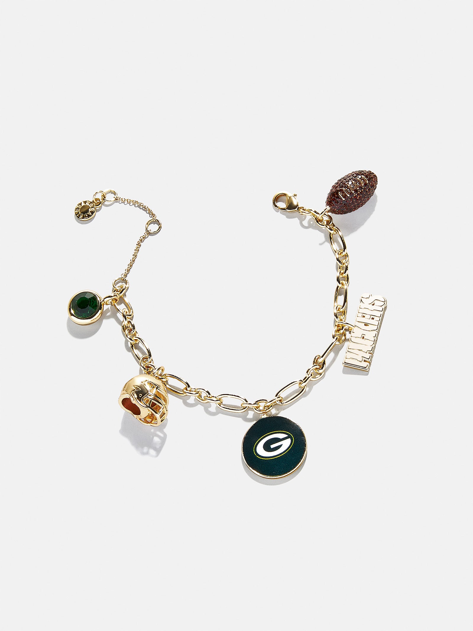 - Charms include a glossy gold helmet. crystal detail. team logo. team nameplate. and a pav?? football