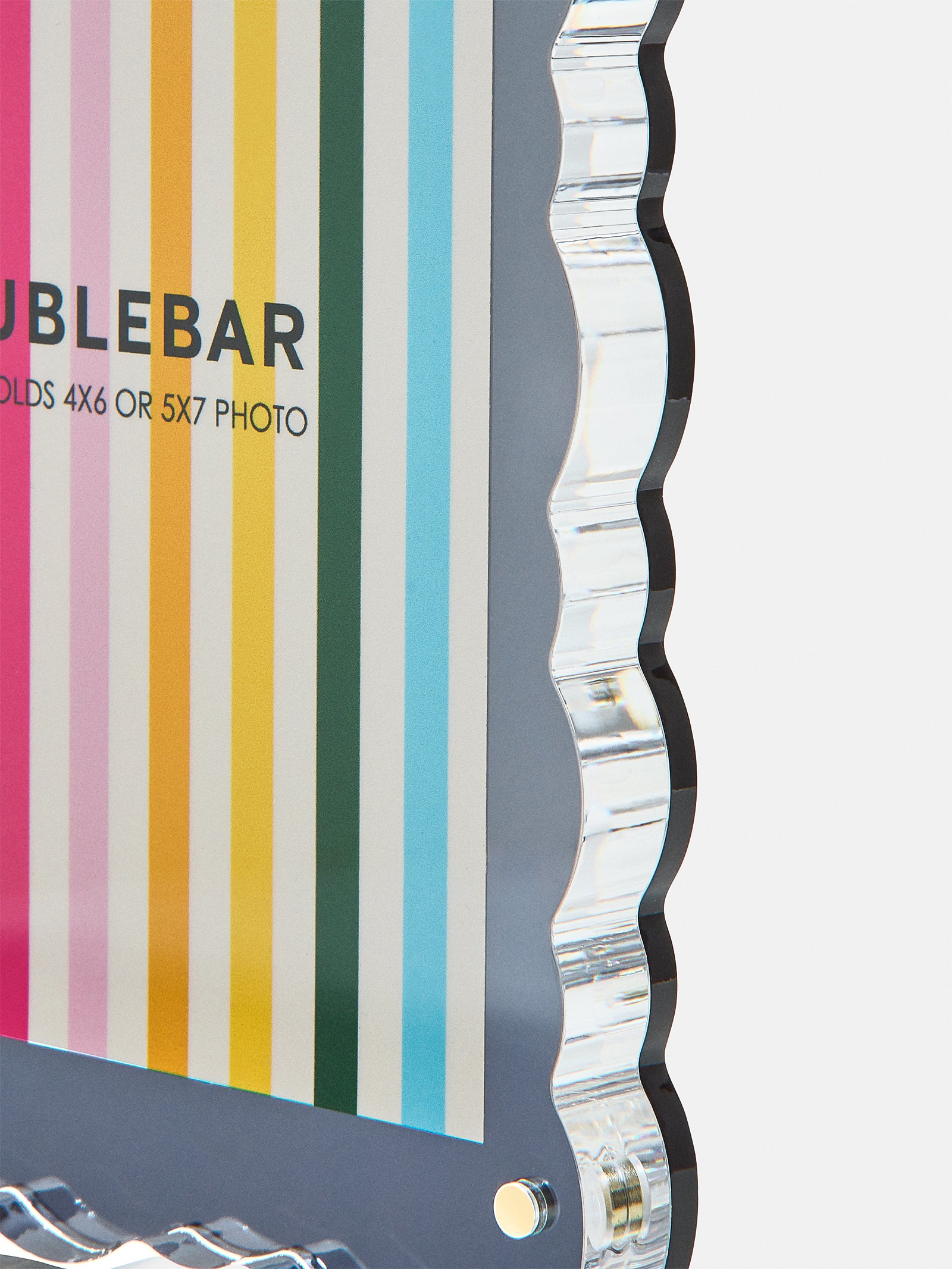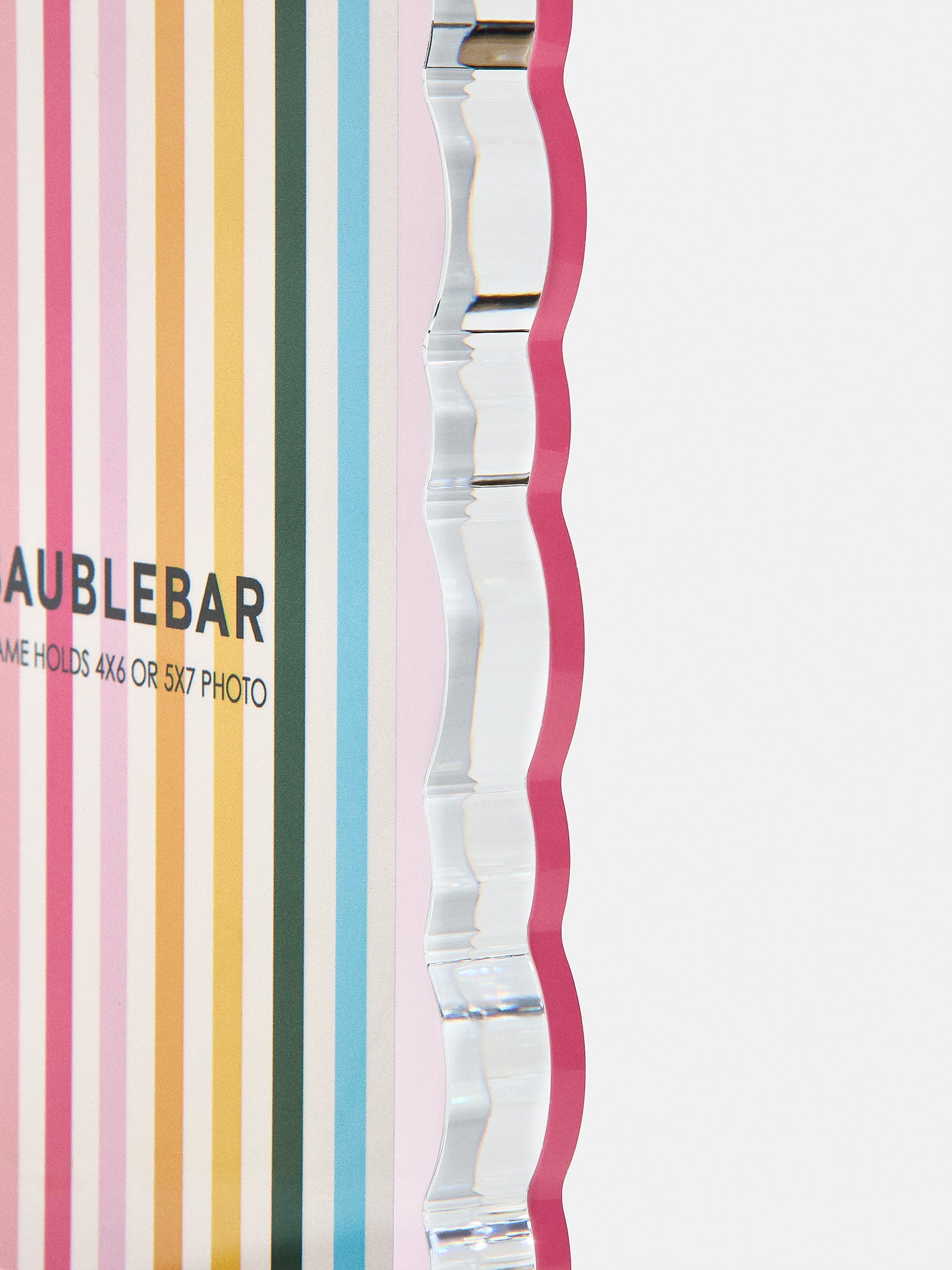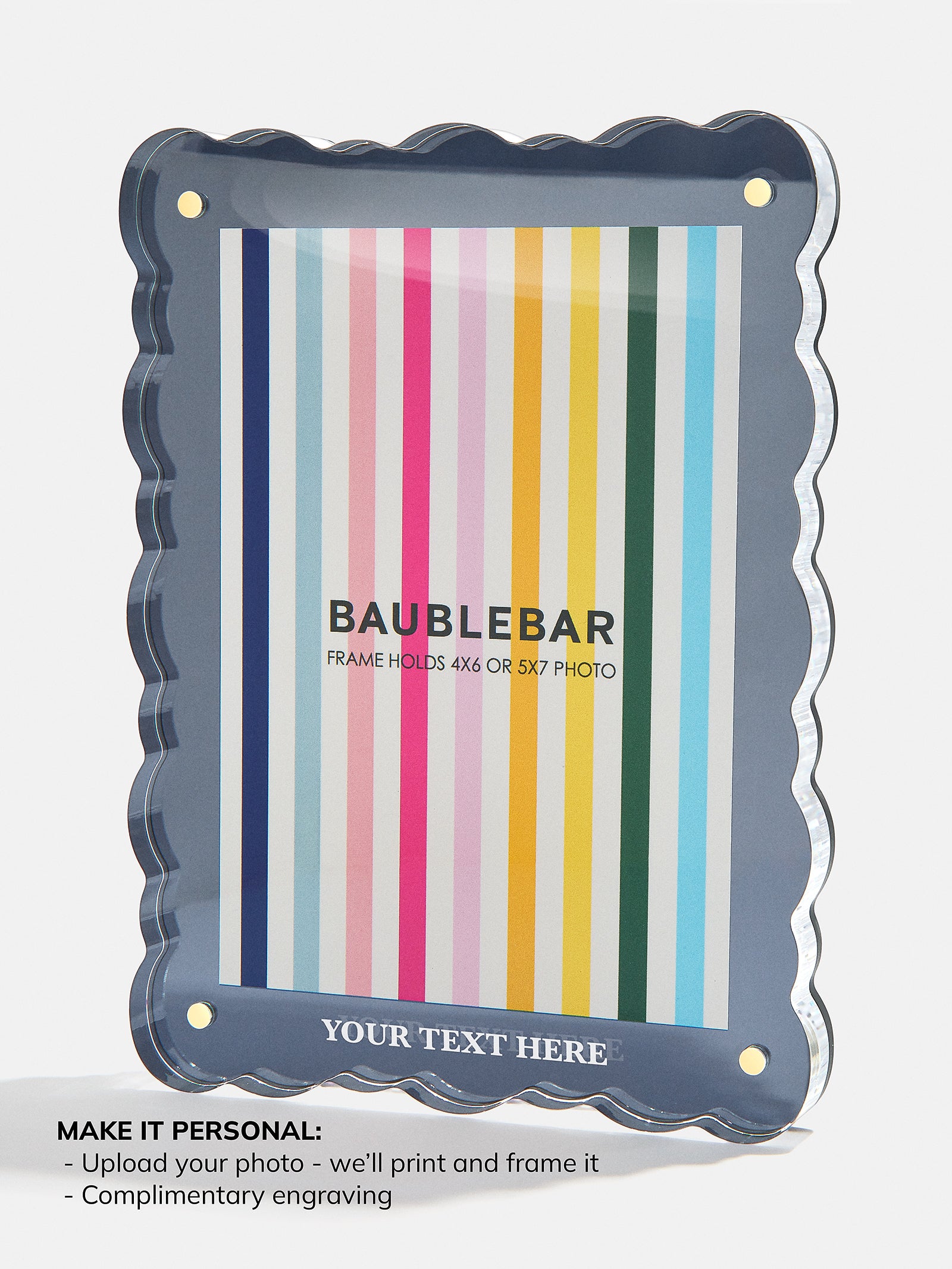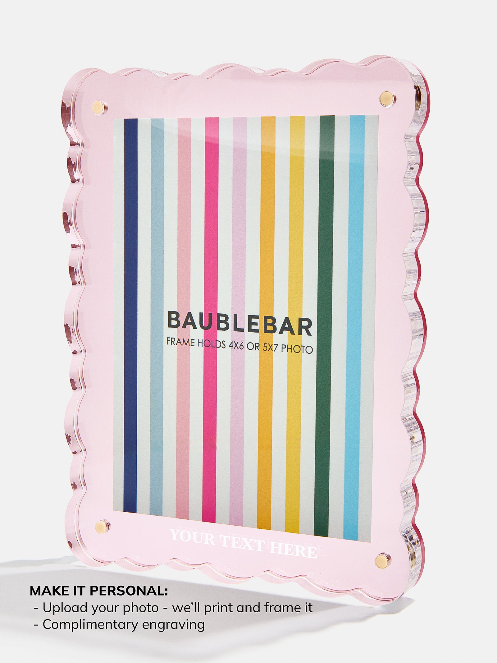 Frames can hold photos up to 5×7. All photos printed by BaubleBar will be printed as 5×7.