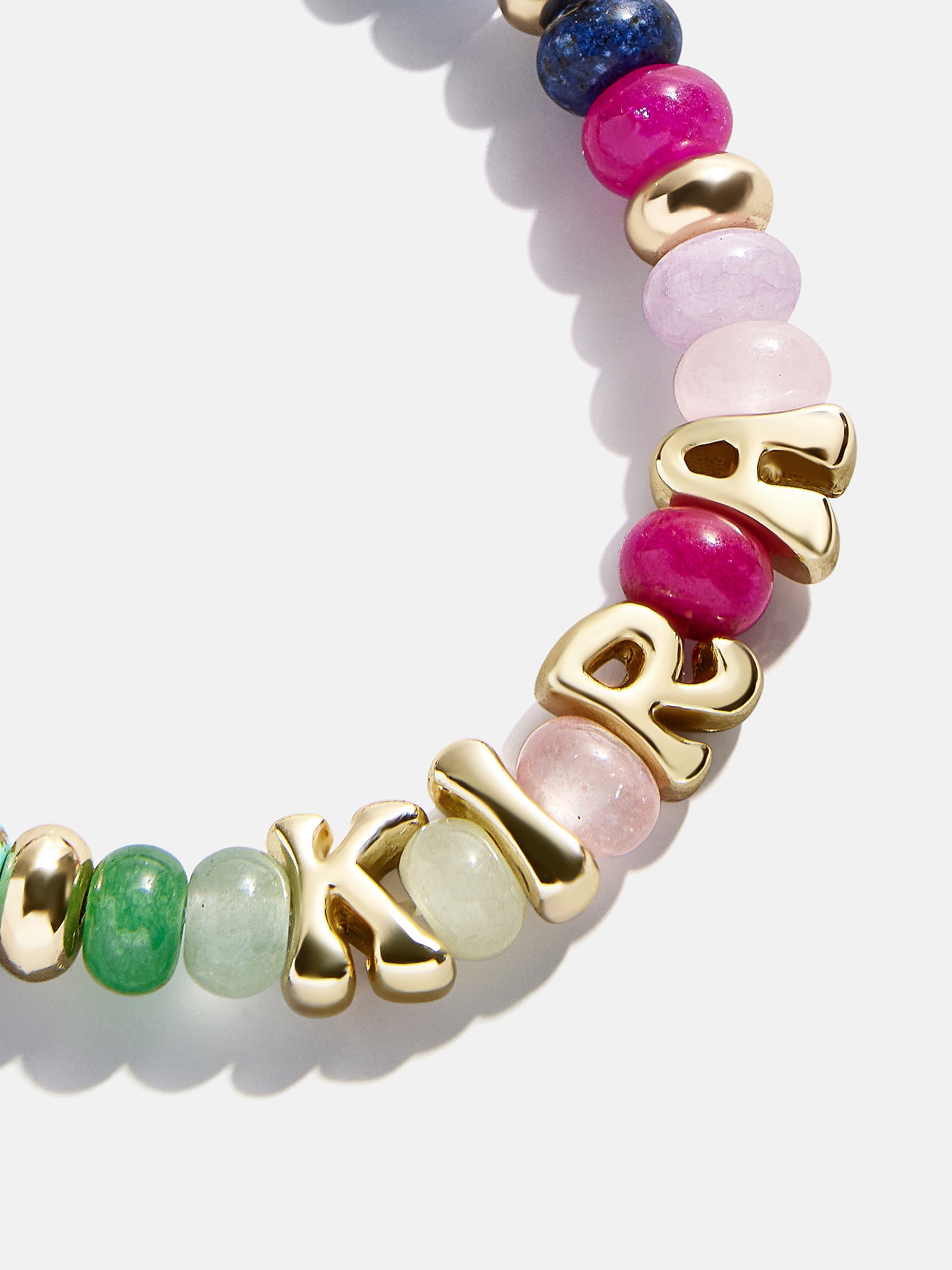 Our much-loved bubble letters meet our meaningful semi-precious stones! Use this bracelet to create a sweet signature statement.