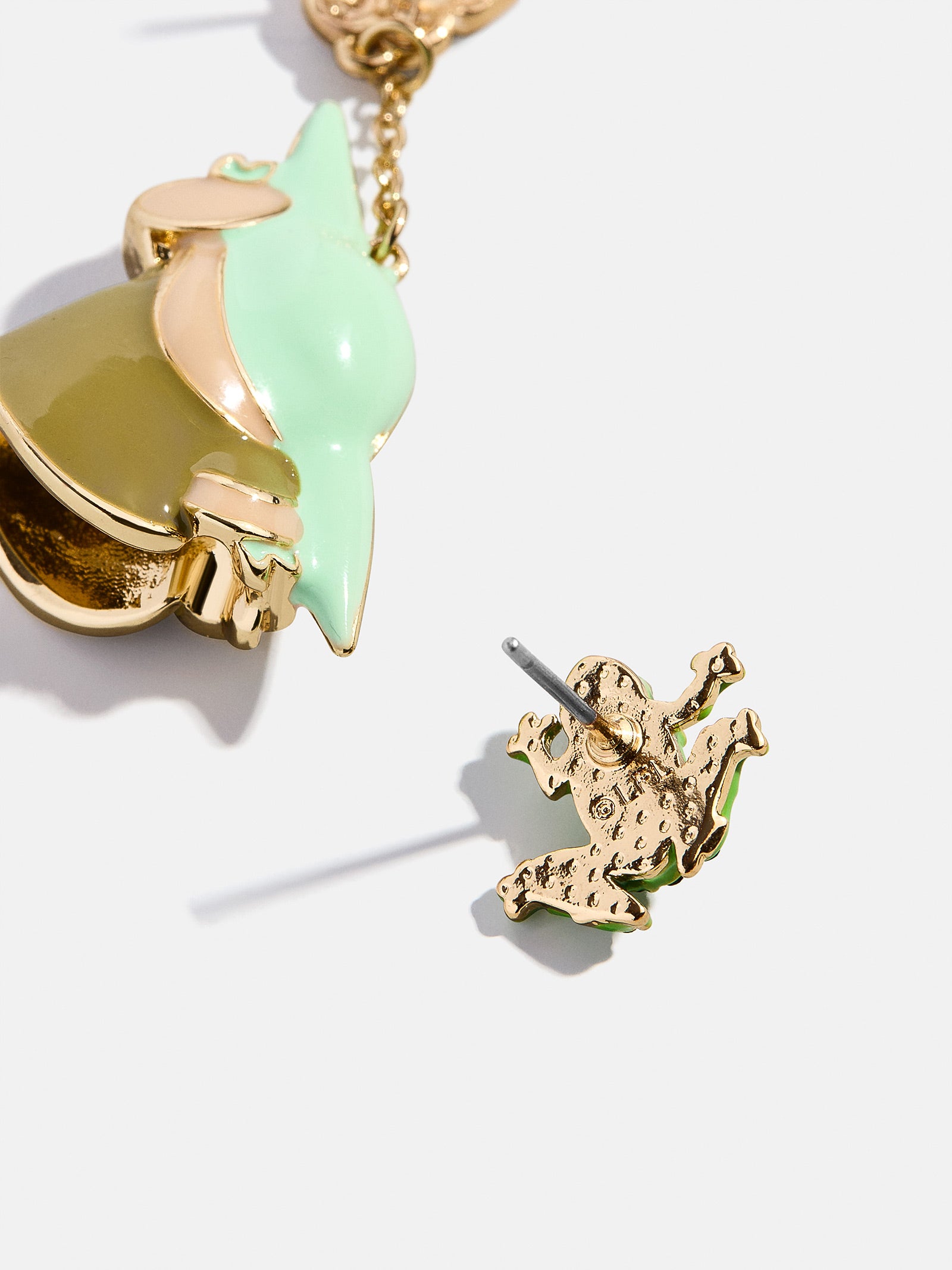 Loved by those even in a galaxy far far away. the STAR WARS? GROGU? Earring Set is sure to turn heads. Mix and match with green frog stud earrings and drop earrings featuring a blue butterfly on top. and Grogu waving below. Wear the pair that suits your mood or wear both pairs together to create a galactic ear stack.