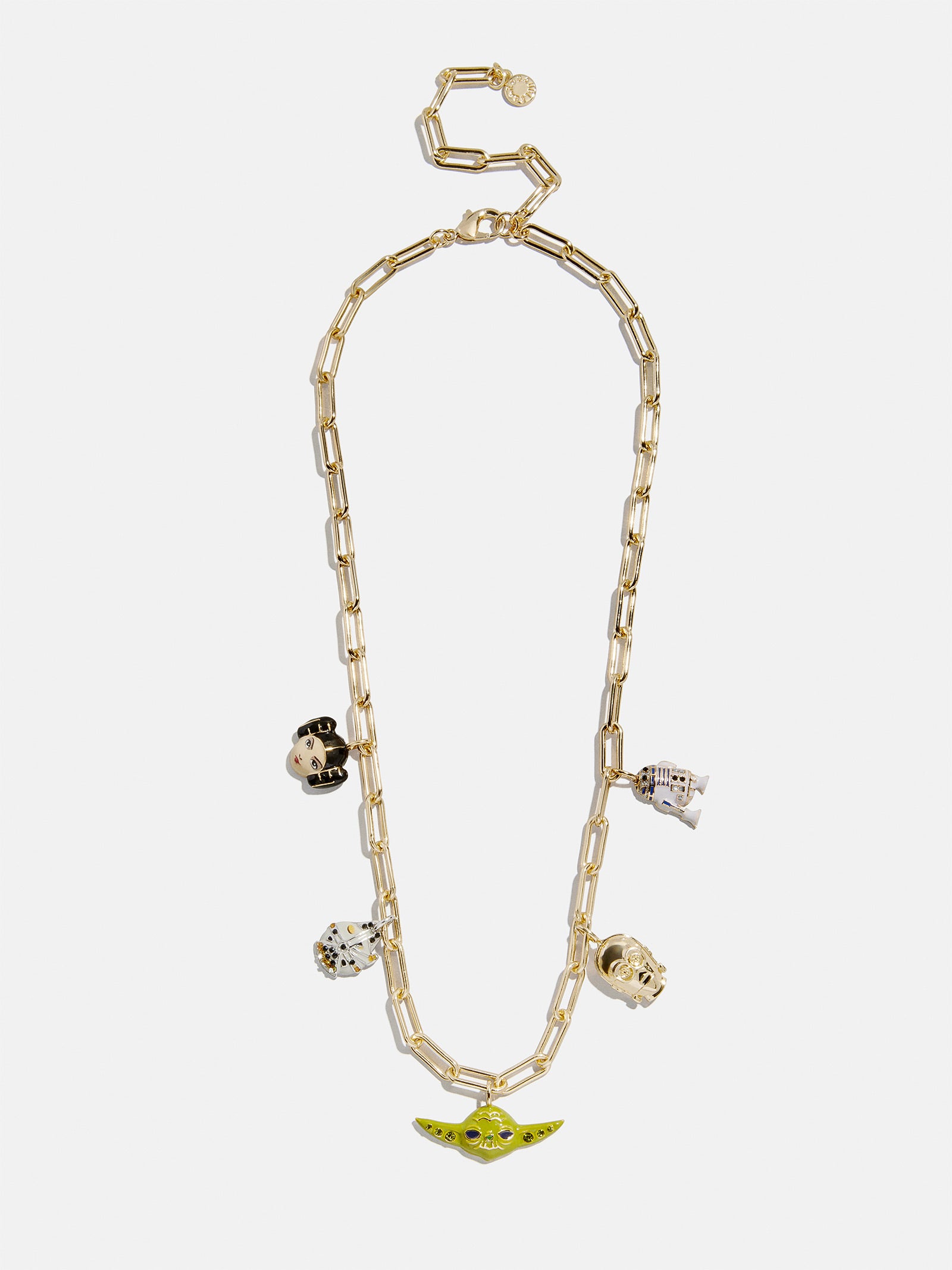 - Features charms of Yoda. R2-D2. C-3PO. Princess Leia. and the Millennium Falcon