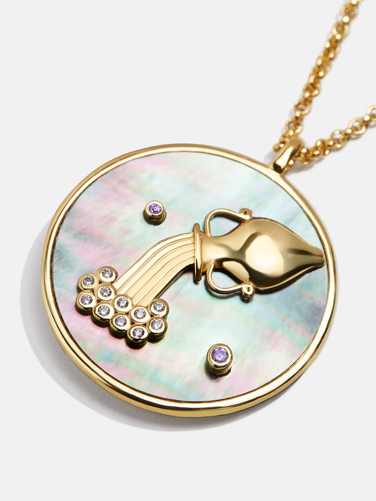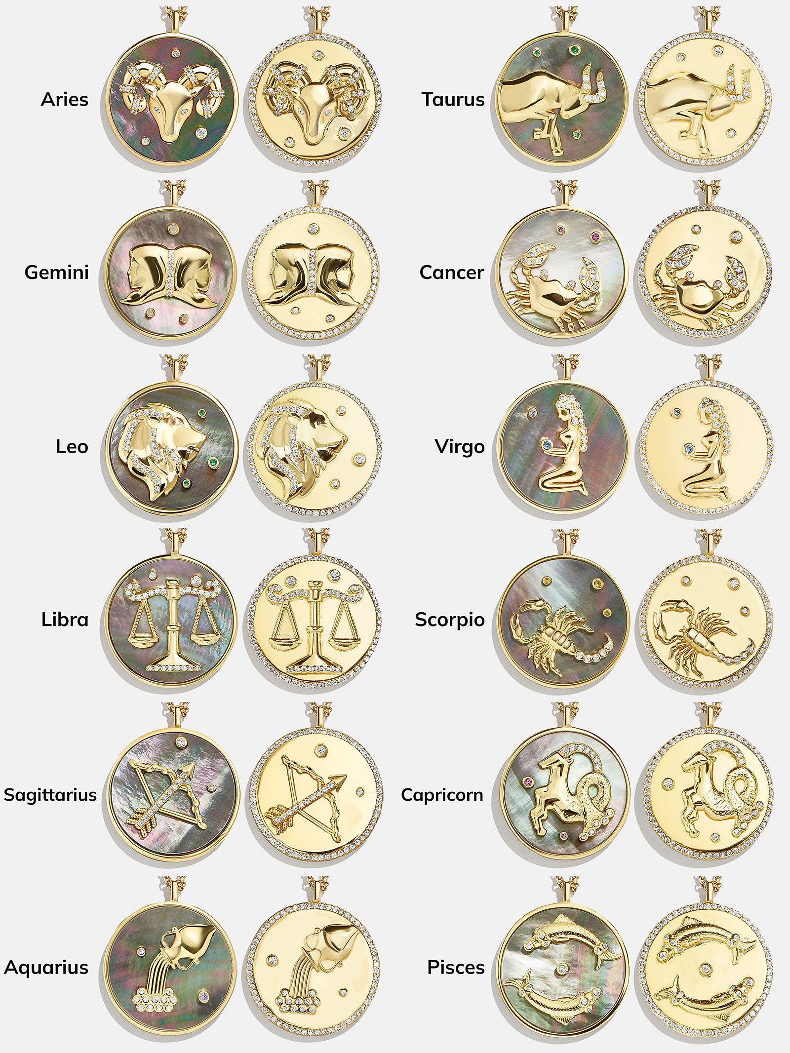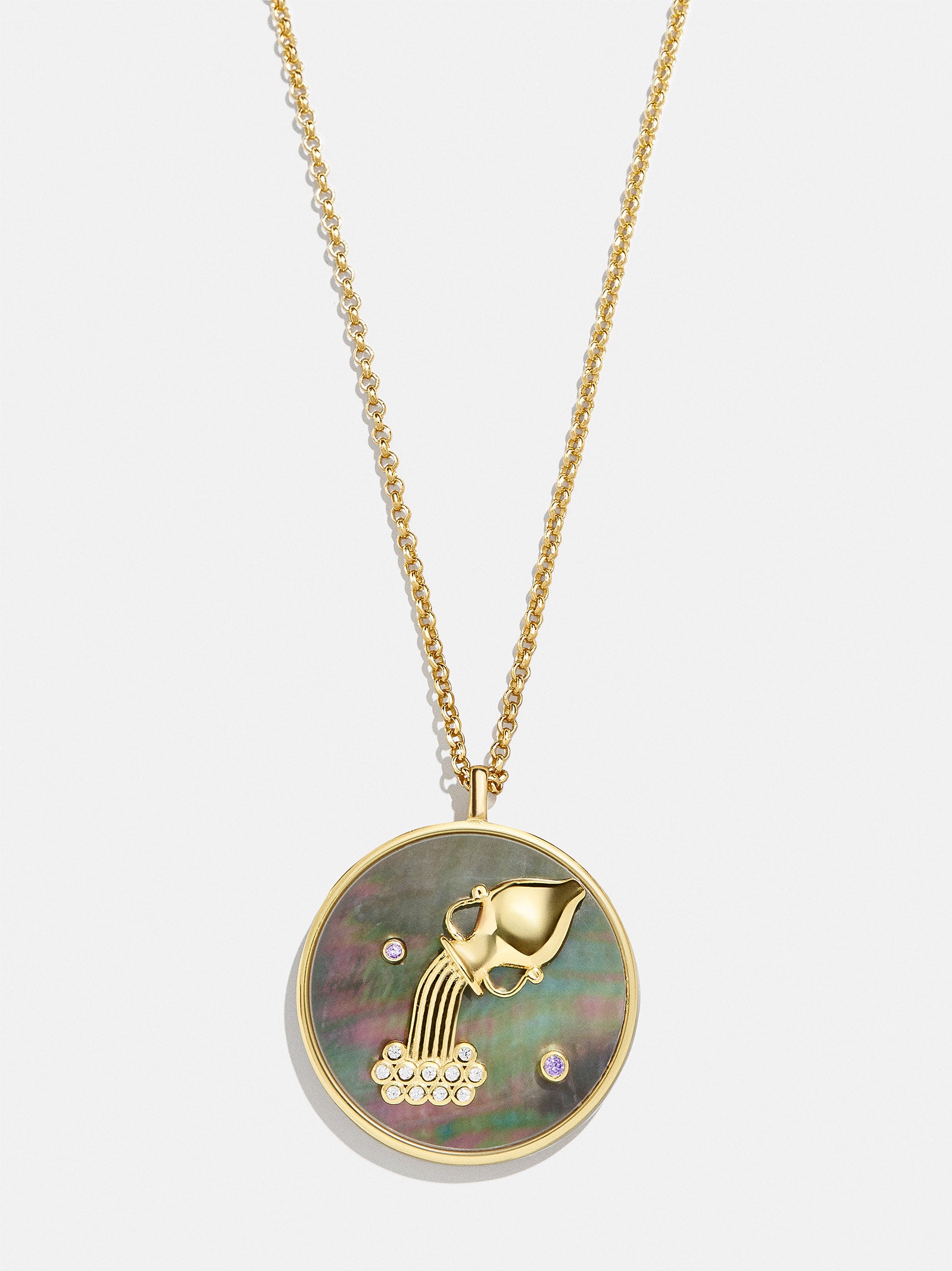 This is your sign. Our collection of reversible zodiac medallion necklaces will be by your side through every solar return. Mercury retrograde. and lunar eclipse. Each pendant is crafted with 18K Gold and luxe Cubic Zirconia stones. One side features gorgeous mother of pearl with gem accents. while the other is gold with a pretty pav?? border. Opt to add your sun. moon. or rising sign (or all three!) to your stack for layers that will guarantee good energy.