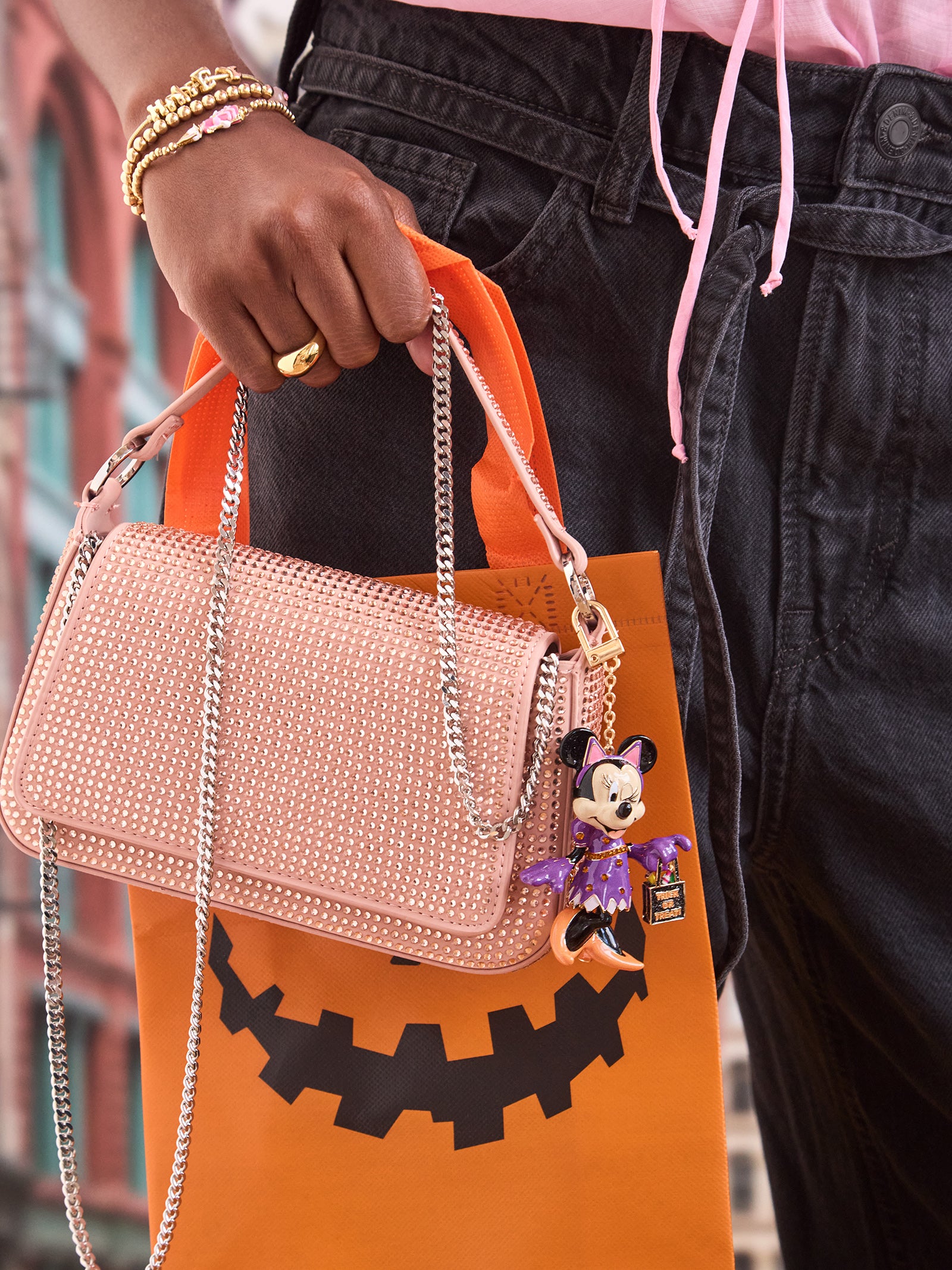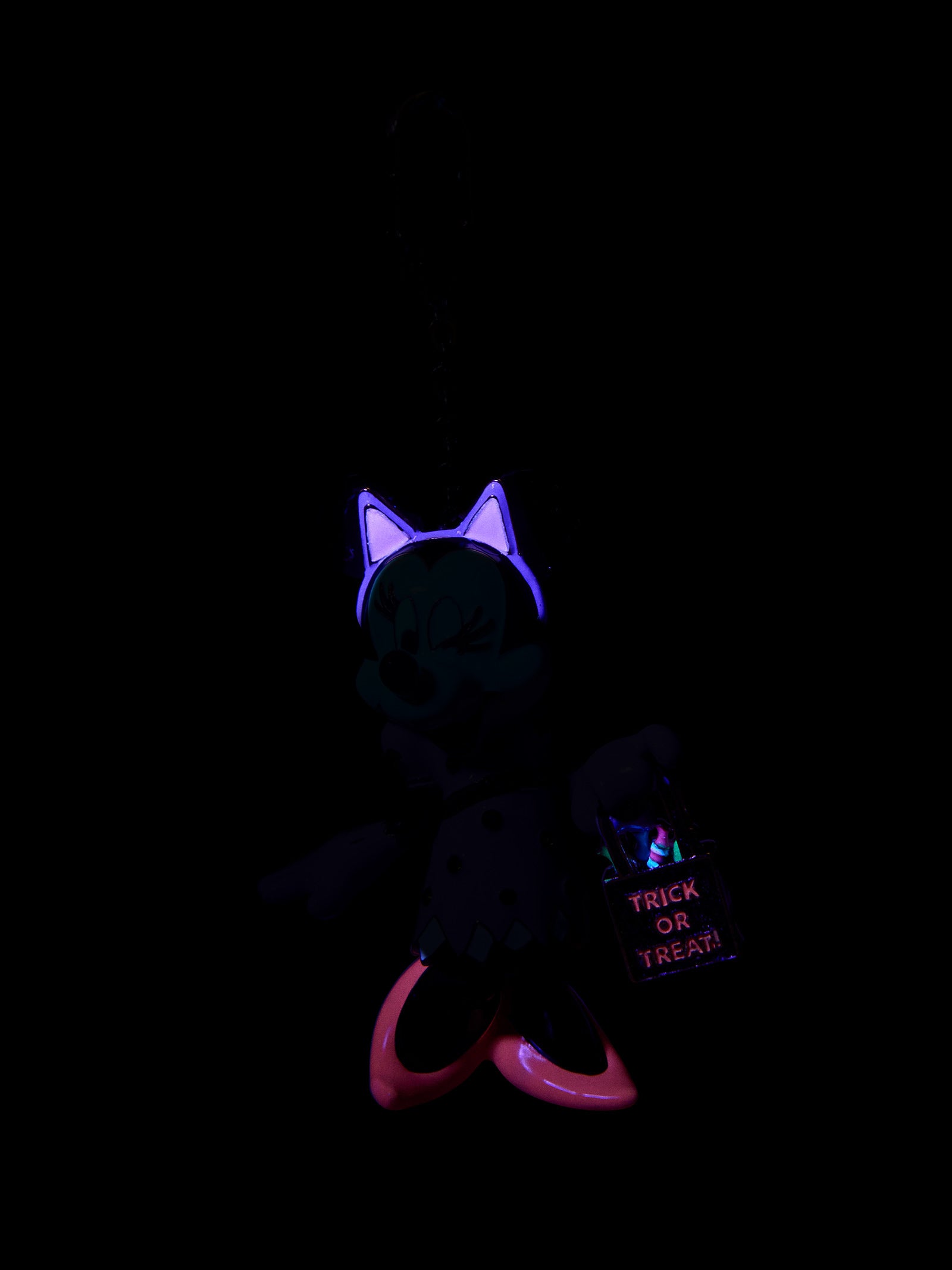 Trick or treat. gimme something Disney for Halloween. The Minnie Mouse Disney Cat Glow-In-The-Dark Bag Charm features Minnie ready to collect some candy. and bring some spooky spirit to your October ‘fits. Easily clip it onto any bag to bring fun personality and Disney Halloween spirit anywhere you go. The best part? This style glows in the dark!